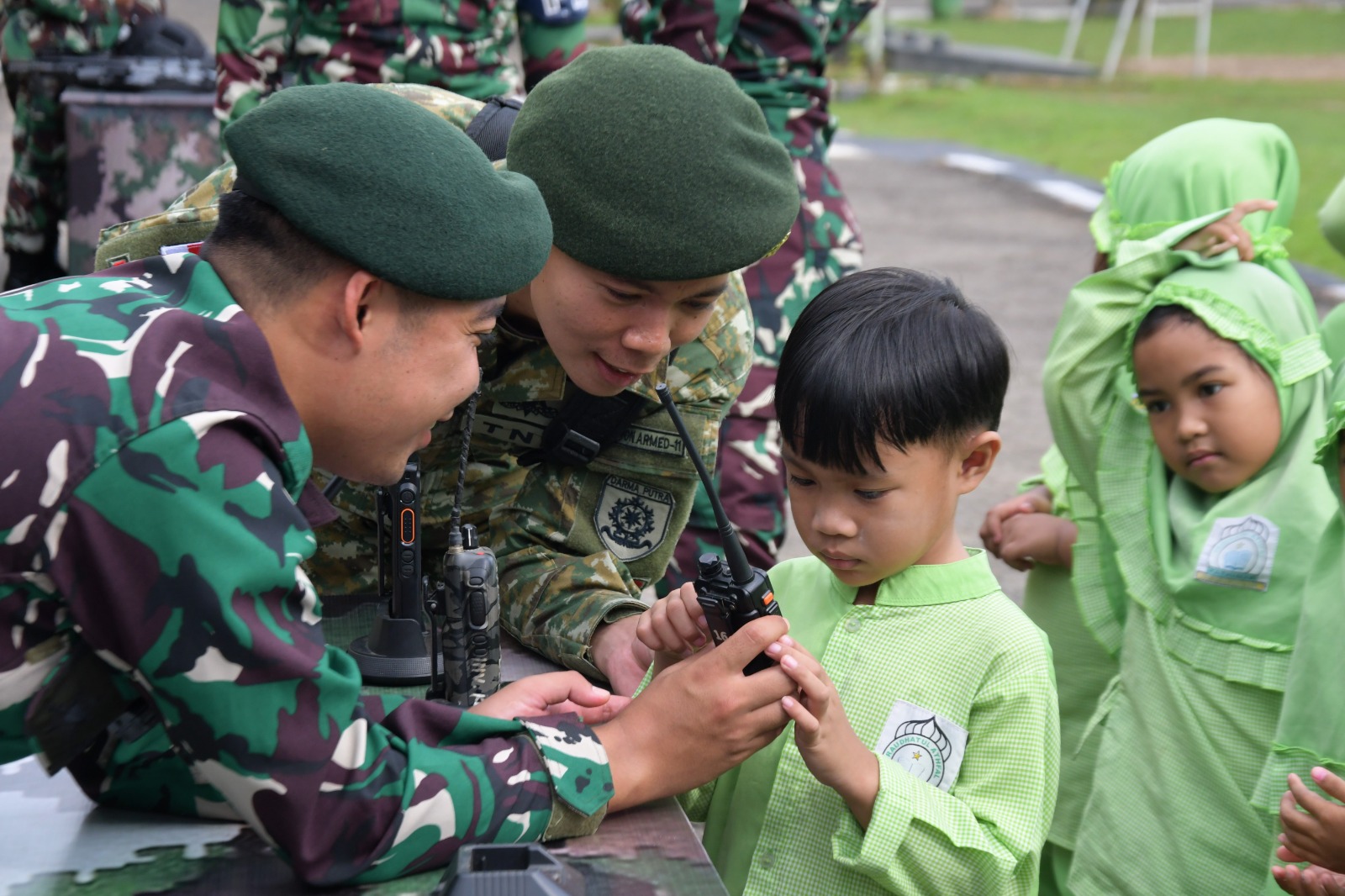 Selain pengenalan perlengkapan, anak-anak juga diajak untuk mengikuti sesi tanya jawab interaktif, serta mencoba berbagai aktivitas ringan yang biasa dilakukan oleh prajurit di lapangan. Tak hanya itu, mereka juga diberikan edukasi tentang pentingnya menjaga persatuan dan kesatuan bangsa.