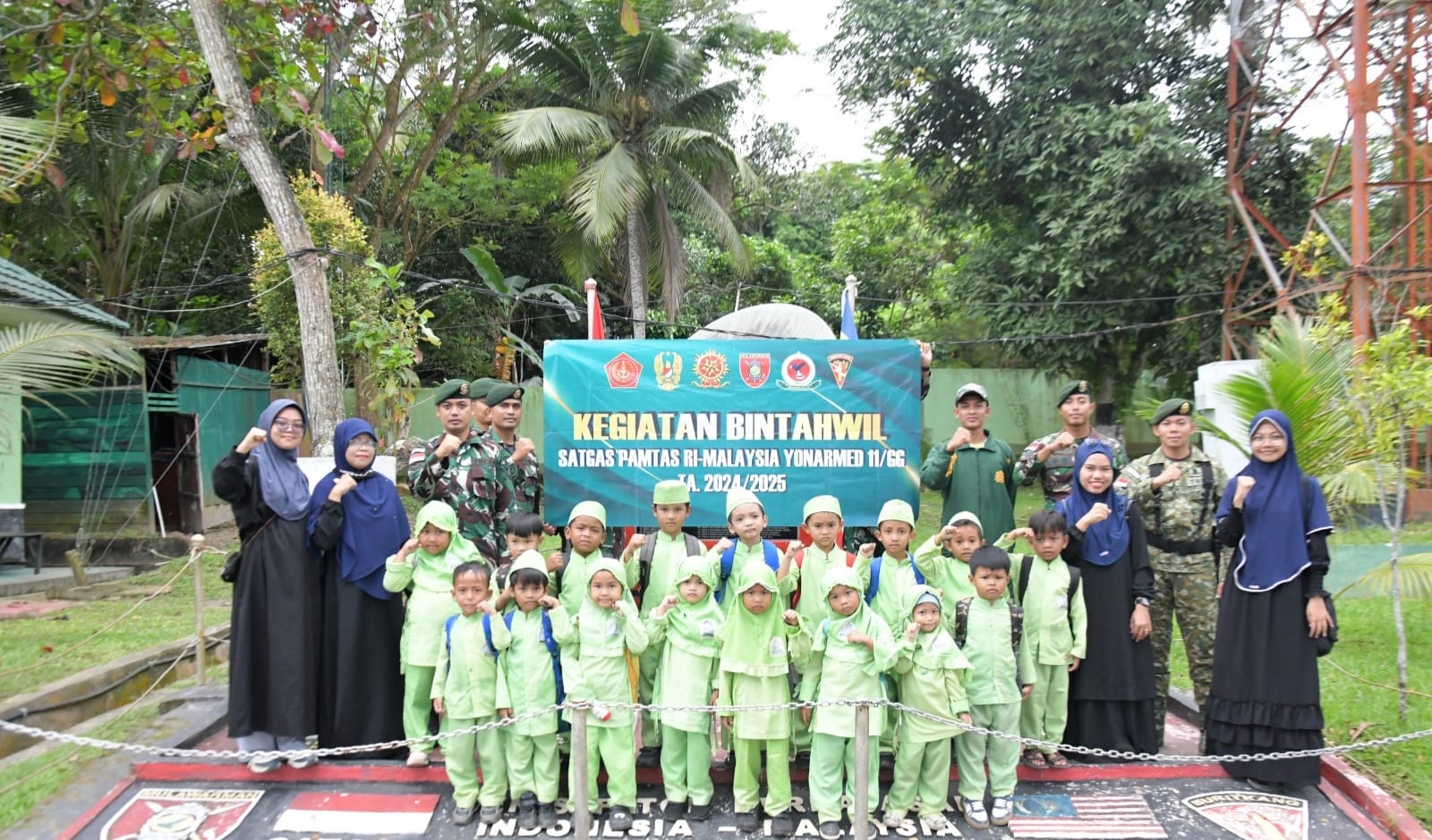 Kunjungan yang berlangsung dengan penuh antusias ini disambut hangat oleh para prajurit Satgas Pamtas Yonarmed 11 Kostrad. Dalam kesempatan tersebut, anak-anak diperkenalkan dengan berbagai perlengkapan militer seperti seragam, kendaraan taktis, dan peralatan lapangan yang digunakan oleh prajurit dalam menjalankan tugas menjaga perbatasan negara.