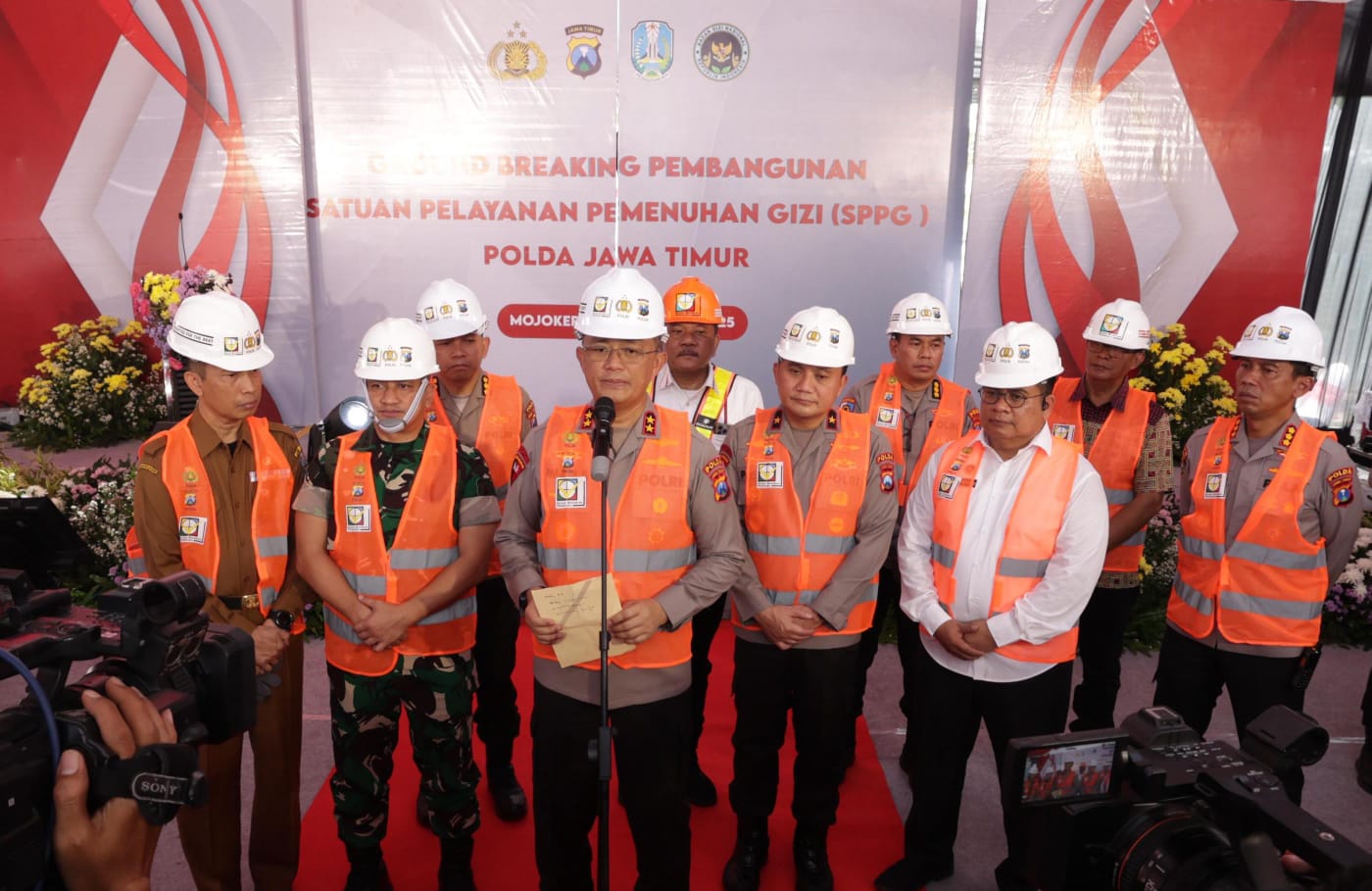 Pembangunan tersebut ditandai dengan peletakan batu pertama oleh Kapolda Jawa Timur, Irjen Pol Drs.Imam Sugianto,M.Si didampingi Wakapolda Jatim, Brigjen Pol Pasma Royce dan para Pejabat Utama Polda Jatim disaksikan oleh perwakilan dari Badan Gizi Nasional dan Forkopimda Kabupaten/Kota Mojokerto.