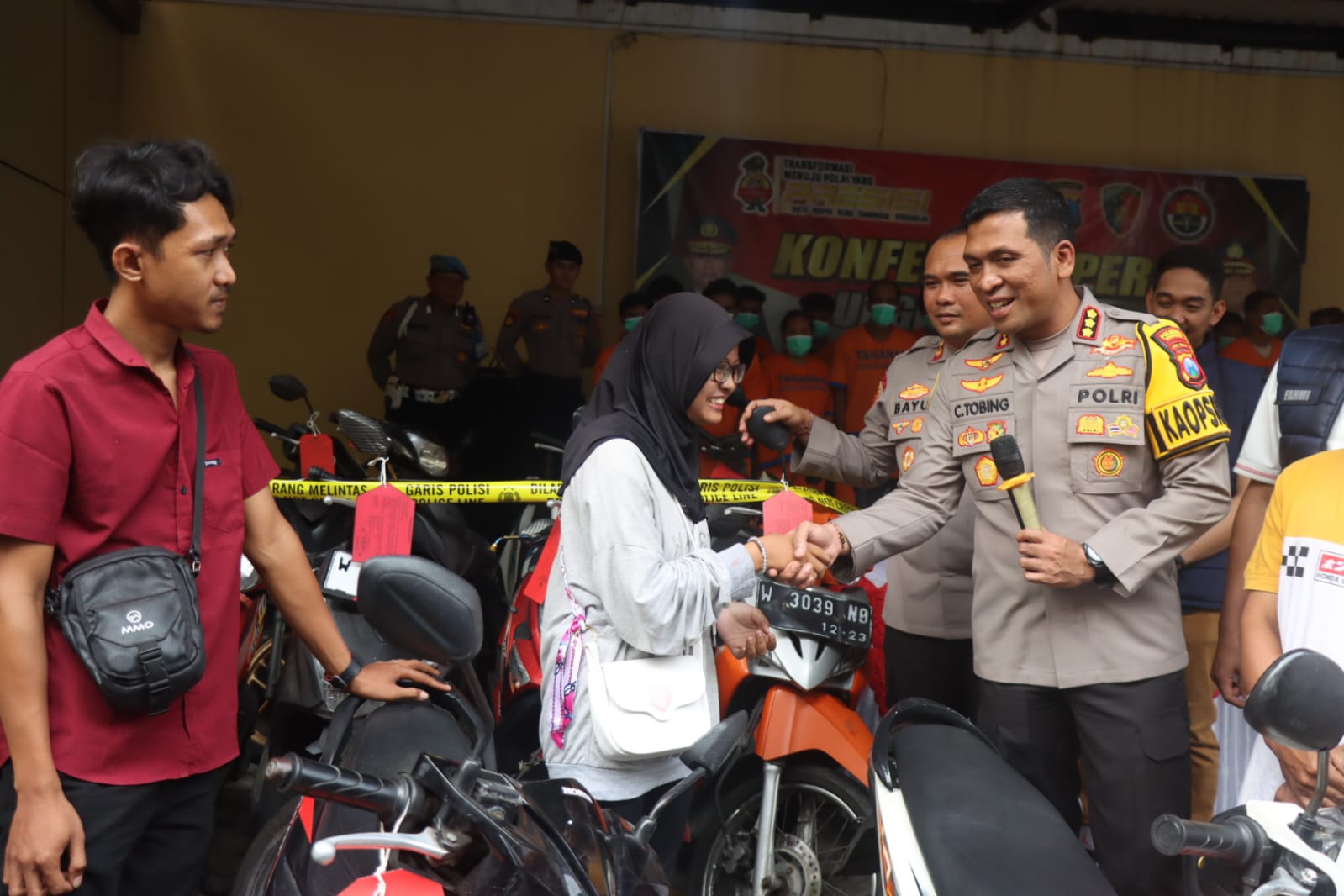 Hasil ungkap kasus curanmor tersebut disampaikan Kapolresta Sidoarjo Kombes. Pol. Christian Tobing, Selasa (25/2/2025) di Mako Polresta Sidoarjo. Serta menunjukan sejumlah barang bukti pada awak media, antara lain 15 unit kendaraan roda dua, empat BPKB, satu STNK, dua handphone, satu kunci motor, satu helm dan sepasang plat nomor. Pada kesempatan ini, juga dilakukan pengembalian barang bukti motor kepada korban.