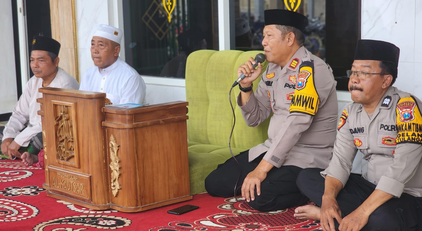 Sidoarjo,Komposisinews.com β Dalam rangka menyemarakkan bulan suci Ramadan serta mempererat silaturahmi dengan masyarakat, Polsek Tulangan menggelar kegiatan pembagian takjil gratis di halaman Musholla Al-Kautsar, Desa Gelang, Kecamatan Tulangan, Selasa (04/03/2025). Kegiatan ini juga diiringi dengan kultum (kuliah tujuh menit) sebagai bagian dari upaya memperkuat nilai-nilai keagamaan.