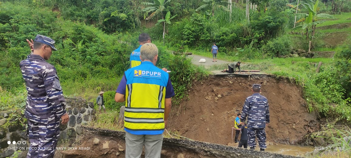 Banjarnegara,Komposisinews.com – Pangkalan TNI AL (Lanal) Cilacap bersama Dinas Pekerjaan Umum dan Penataan Ruang (DPUPR) Kabupaten Banjarnegara melaksanakan survei identifikasi Jembatan di Desa Kalibombong, Kecamatan Kalibening, Kabupaten Banjarnegara yang ambruk akibat diterjang banjir pada Kamis sore (06/03/2025).