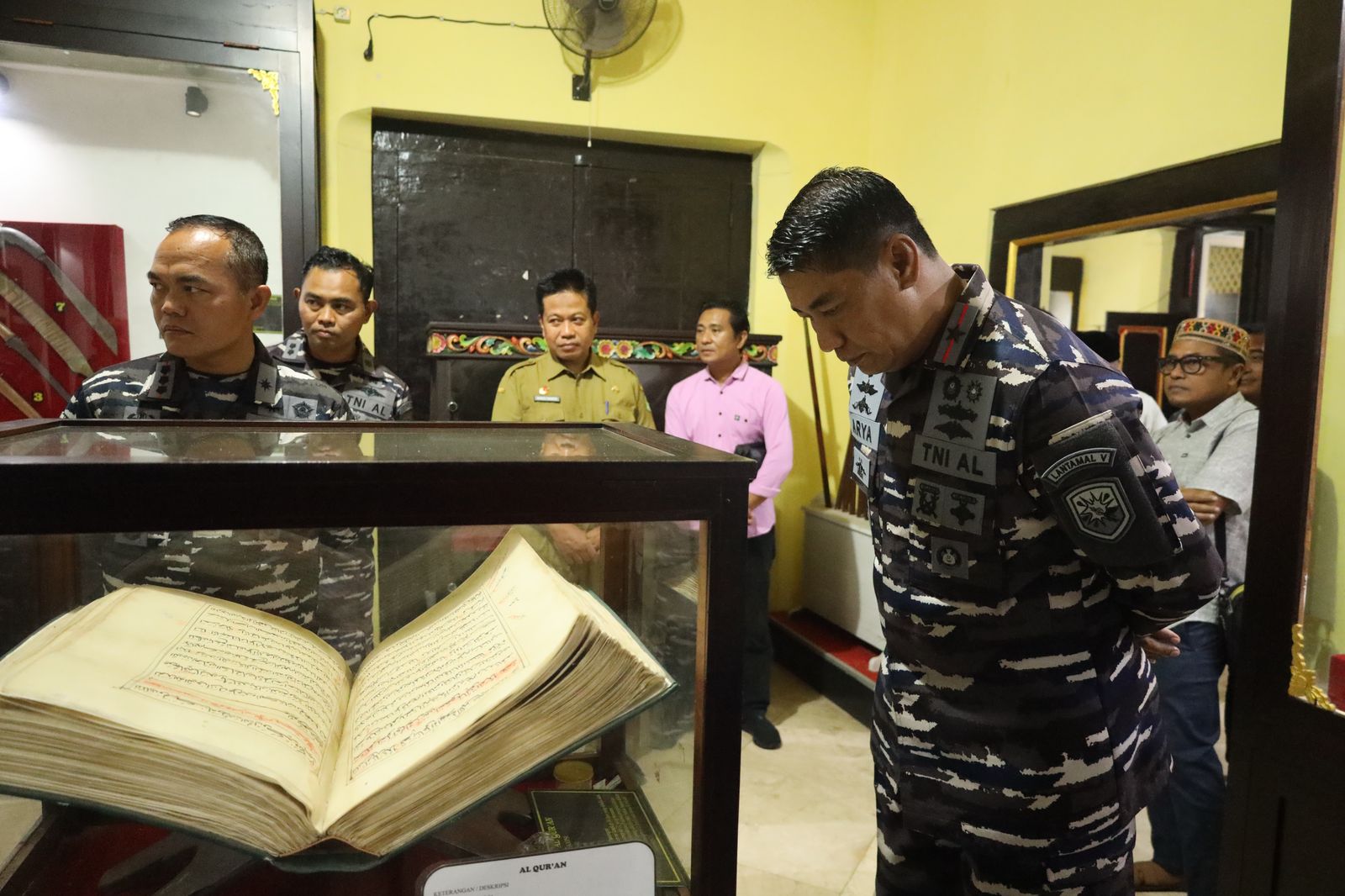 Di penghujung napak tilas sejarah Danlantamal V meninjau Museum yang masih berada di Komplek Rumah Dinas Bupati Sumenep dan menyaksikan benda benda pusaka dan senjata yang digunakan pada oleh raja dan pejabat Karaton Sumenep di masa tersebut. Danlantamal V tertuju pada Kitab Suci Al-Quran tulisan tangan 30 Juz lengkap yang ditulis oleh Sultan Abdurrahman Pakunataningrat, Raja Sumenep ke-32. Kitab Suci Al-Quran ini ditulis sekitar tahun 1811 yang ditulis oleh beliau hanya dalam waktu semalam (12 jam) dengan memiliki dimensi tinggi 49 cm, lebar 33 cm, tebal 11cm, berat 14 kg, dan bahan terbuat dari kertas panoragan. (Arifin)