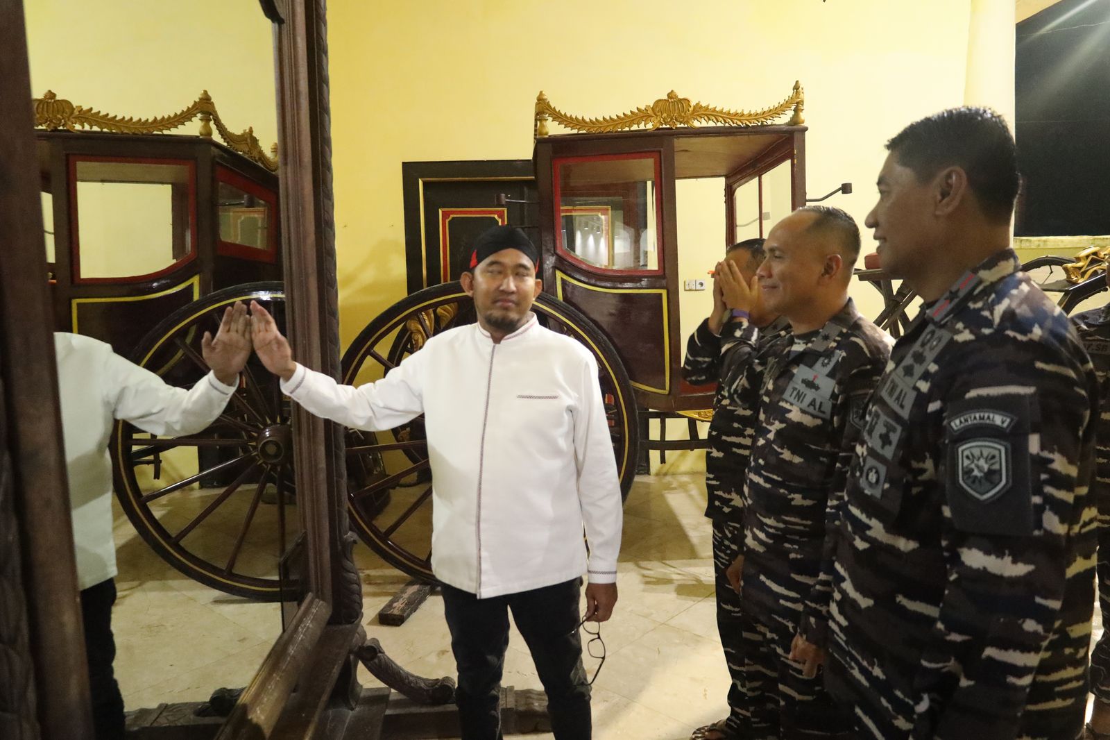 Pada kesempatan tersebut Danlantamal V beserta rombongan menyusuri satu persatu ruangan bersejarah masa lampau mulai dari ruang pribadi raja atau sultan yang pernah memerintah Keraton Sumenep dari masa ke masa.
