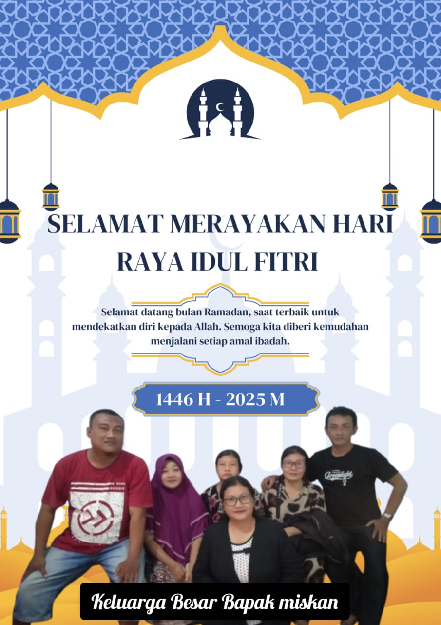 Surabaya,Komposisinews.com – Segenap Keluarga Besar Bapak Miskan Mengucapkan Selamat Hari Raya Idul Fitri 1 Syawal 1446 H. Minal Aidzin Wal Faidzin Mohon Maaf Lahir dan Batin