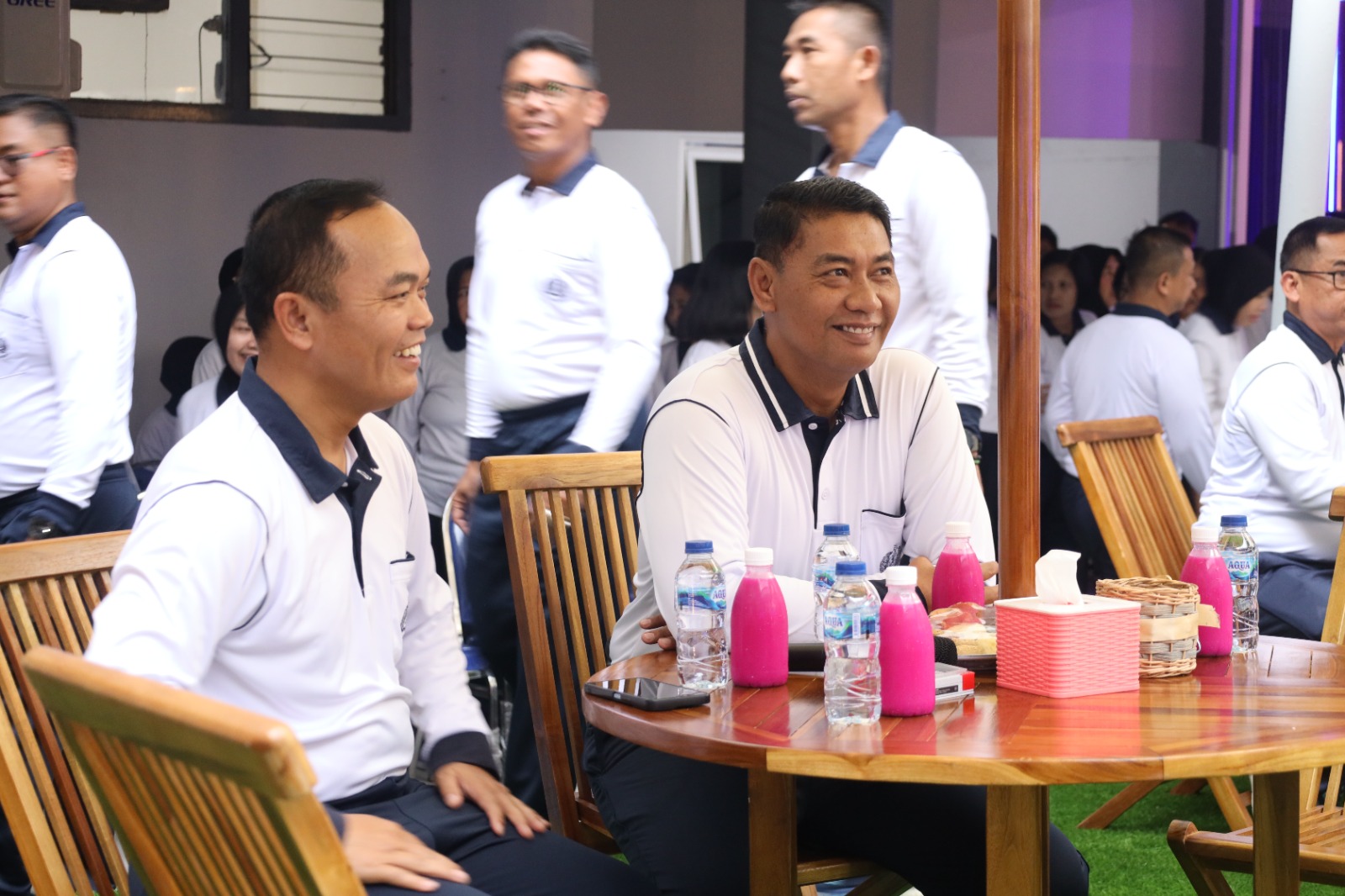 Acara diawali dengan olah raga bersama Komandan, PJU dan Kasatker serta prajurit Lantamal V, dimana para PJU dan Kasatker melaksanakan pengecekan Tekanan darah (Tensi) dan Cek darah/laborat sebelum olah raga dimulai. Kegiatan olah raga dimulai dengan senam nusantara serta jalan keliling kesatrian Mako Lantamal V guna meningkatkan kesehatan dan imunitas tubuh, agar selalu terbentuk prajurit yang sehat dan prima.