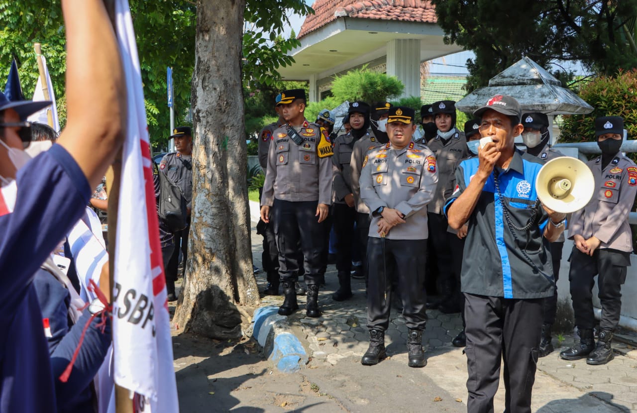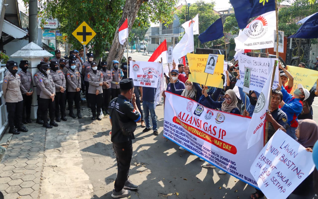 Polres Jombang turut mengamankan kegiatan aksi unjuk rasa oleh DPP GAS-JP yang digelar di depan Gedung DPRD Kabupaten Jombang. Aksi ini diikuti oleh sekitar 50 orang peserta, dengan tuntutan utama agar pemerintah menindak tegas perusahaan outsourcing yang memberikan upah di bawah standar UMR.