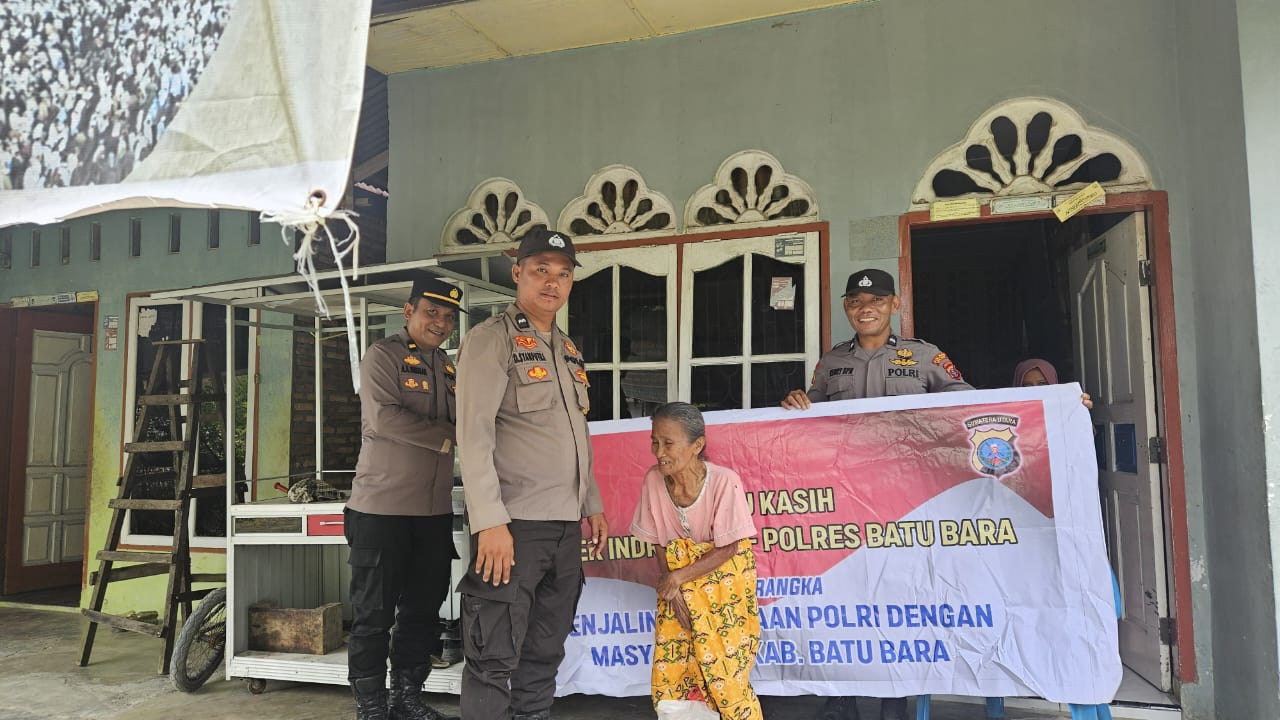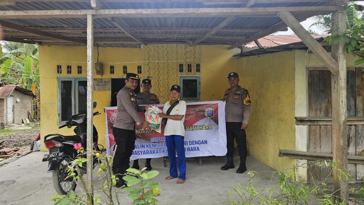 Tali asih Personil Polsek Indrapura memberikan sembako berupa beras @ 5kg kepada Wagira Br Simanjuk (80 tahun), Mura (75 tahun) dan Manimbul Siagian (60 tahun)