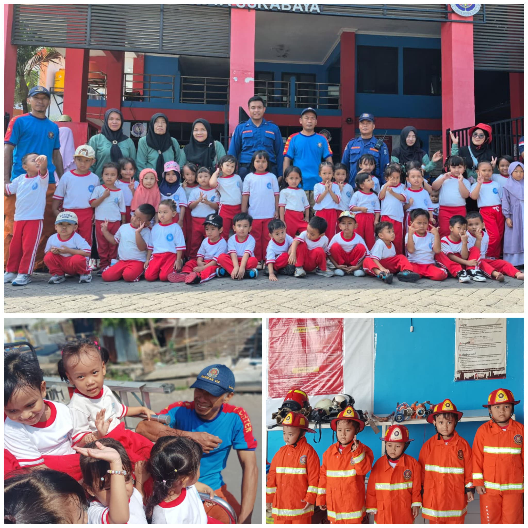 Surabaya,Komposisinews.com – Perlu diacungi jempol, dinas pemadam kebakaran Bulak kedatangan tamu istimewa. Kali ini tamunya adik – adik usia dini, dari PPT Mutiara Kedung Cowek Jl. Cupat GG H. Ulum bersama PPT Surya Madya Kapas Madya 4 no 25 Surabaya. Kedatangannya mendapatkan edukasi tentang kebakaran dan tata cara pemakaian baju kebakaran. Acara dibagi dua season, season pertama PPT Surya Madya dilanjutkan season kedua PPT Mutiara Kedung Cowek.