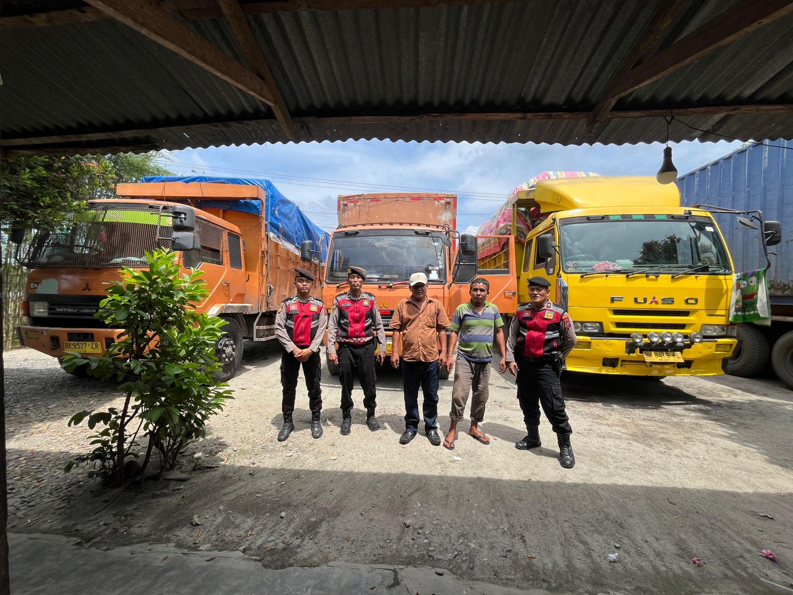 Dalam patroli ini, petugas memberikan himbauan kamtibmas kepada para supir truk yang sedang beristirahat dan makan siang.