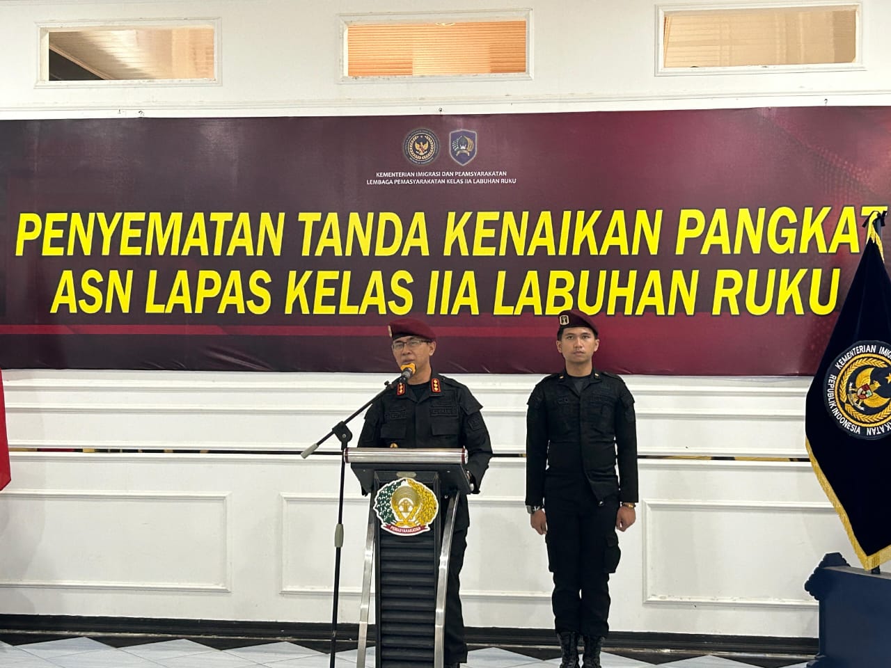 Acara penyematan kenaikan pangkat tersebut turut dihadiri oleh para pejabat struktural serta seluruh staf Lapas Labuhan Ruku. Dalam sambutannya, Kalapas menyampaikan bahwa kenaikan pangkat bukanlah hadiah, melainkan hasil dari kerja keras dan tanggung jawab yang telah diemban dengan baik oleh para pegawai. “Kenaikan pangkat harus dijadikan motivasi untuk terus meningkatkan kinerja dan pelayanan,” ujar Soetopo Berutu