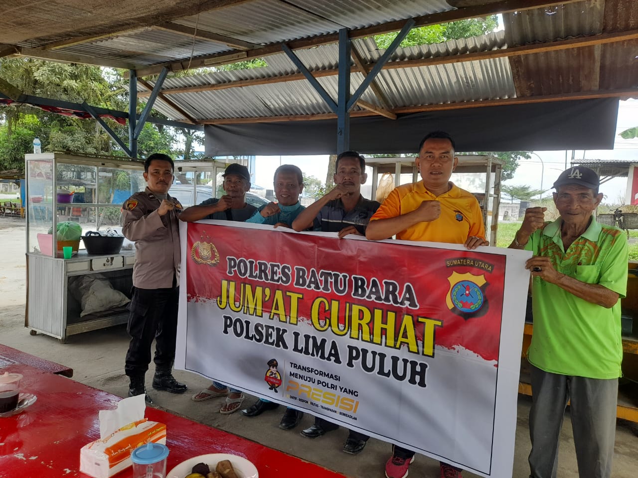 Lima Puluh,Komposisinews.com – 23 Mei 2025 – Polsek Lima Puluh, Kabupaten Batu Bara, melakukan kegiatan Jumat Curhat dan penyuluhan kamtibmas di Warung Dedek, Desa Perk Dolok, Kecamatan Lima Puluh, pada Jumat, 23 Mei 2025.