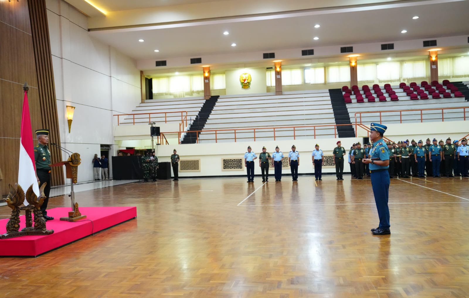 Kepala Staf Umum (Kasum) TNI Letjen TNI Richard Tampubolon mewakili Panglima TNI Jenderal TNI Agus Subiyanto, memimpin acara Laporan Korps Kenaikan Pangkat 76 Perwira Tinggi (Pati) TNI tersebut.