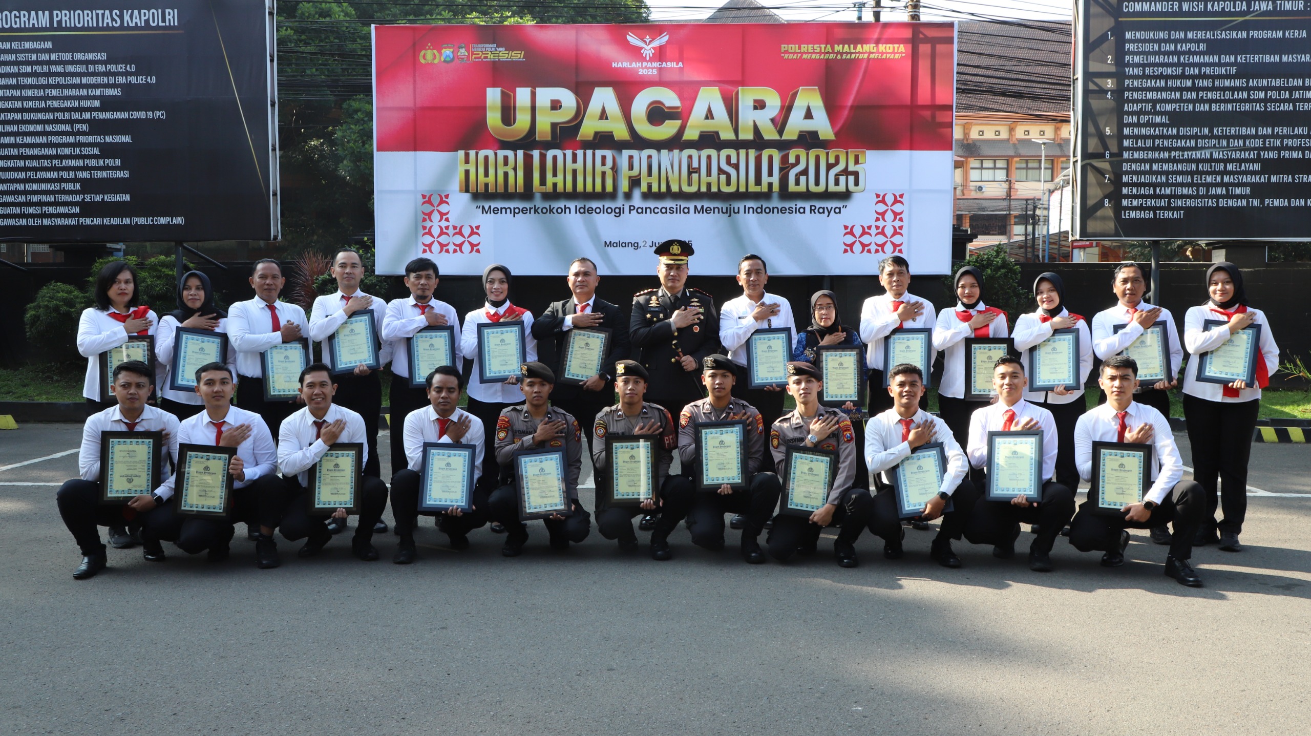 Kota malang,Komposisinews.com – Kapolresta Malang Kota, Kombes Pol Nanang Haryono, SH, SIK, MSi, memimpin langsung Upacara Peringatan Hari Lahir Pancasila 1 Juni 2025 yang digelar secara khidmat di halaman Mapolresta Malang Kota, Senin (2/6/2025).