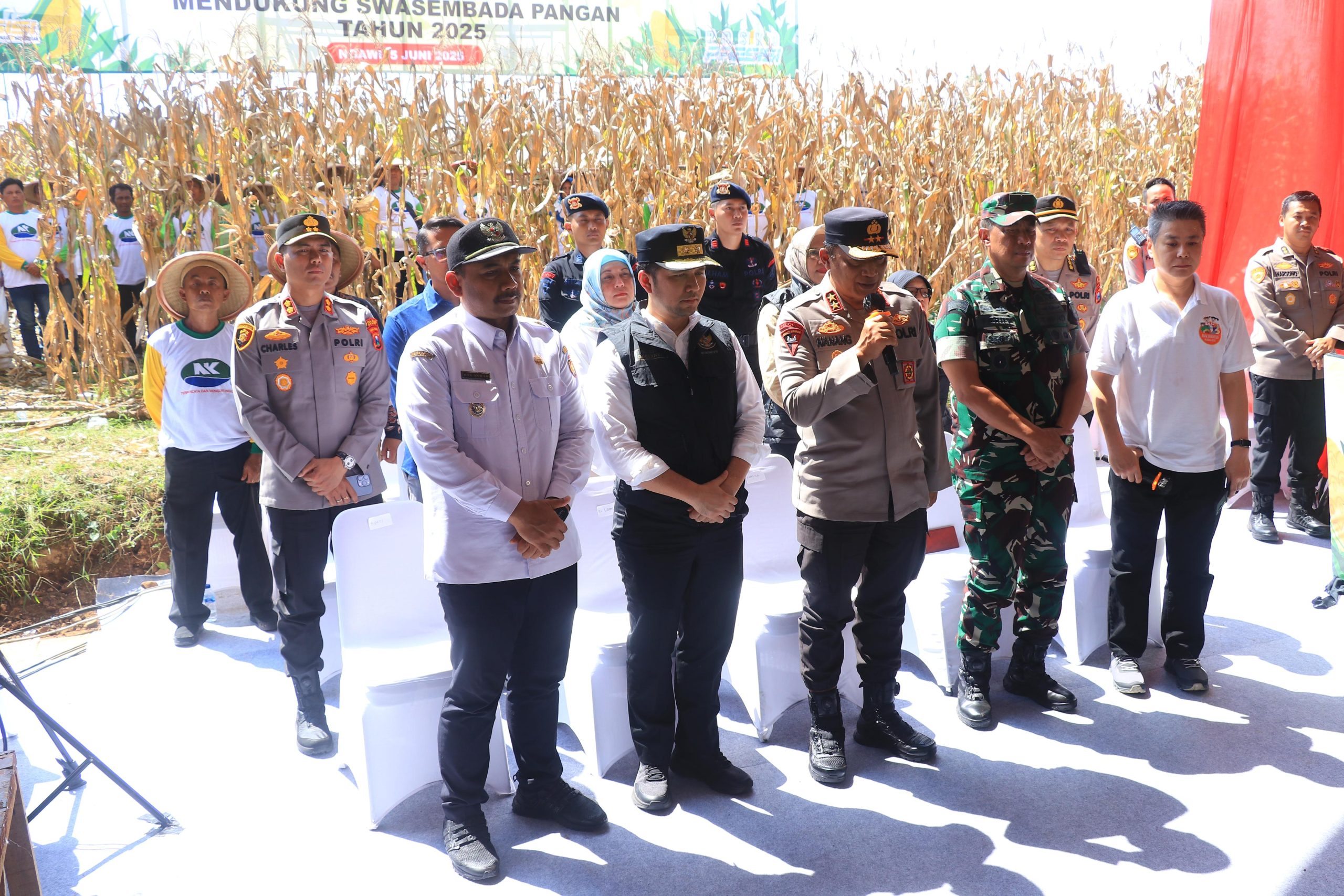 Kapolda Jatim, Irjen Pol Nanang Avianto mengatakan panen raya jagung di Kabupaten Ngawi ini adalah salah satu wujud dari upaya mendukung swasembada pangan seperti yang dicanangkan Presiden RI Prabowo Subianto.
