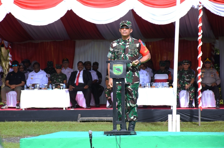 Pangdam XVIII/Kasuari, Mayjen TNI Jimmy Ramoz Manalu, S.Hub.Int., M.H.I., dalam sambutannya menegaskan bahwa TMMD yang merupakan operasi bakti yang dilaksanakan secara terpadu dan lintas sektoral bersama dengan Kementerian/Lembaga Pemerintah Non Kementerian, Pemda serta seluruh komponen masyarakat.