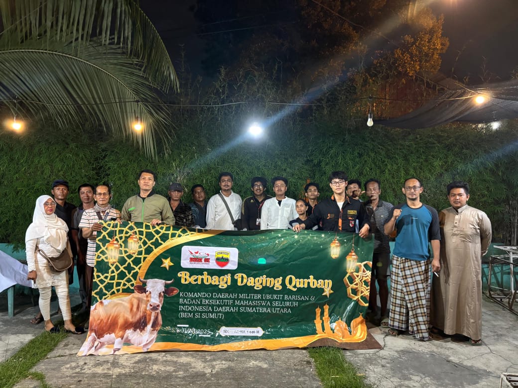 Medan,Komposisinews.com – Kodam I/Bukit Barisan menyalurkan 1.200 paket daging kurban kepada masyarakat yang membutuhkan, dengan melibatkan Badan Eksekutif Mahasiswa (BEM) dari berbagai perguruan tinggi di Sumatera Utara. Kegiatan ini diawali dengan penyerahan simbolis di halaman Masjid Taqwa Makodam I/BB pada Jumat (6/6/2025), yang turut dihadiri perwakilan mahasiswa dari sejumlah kampus.