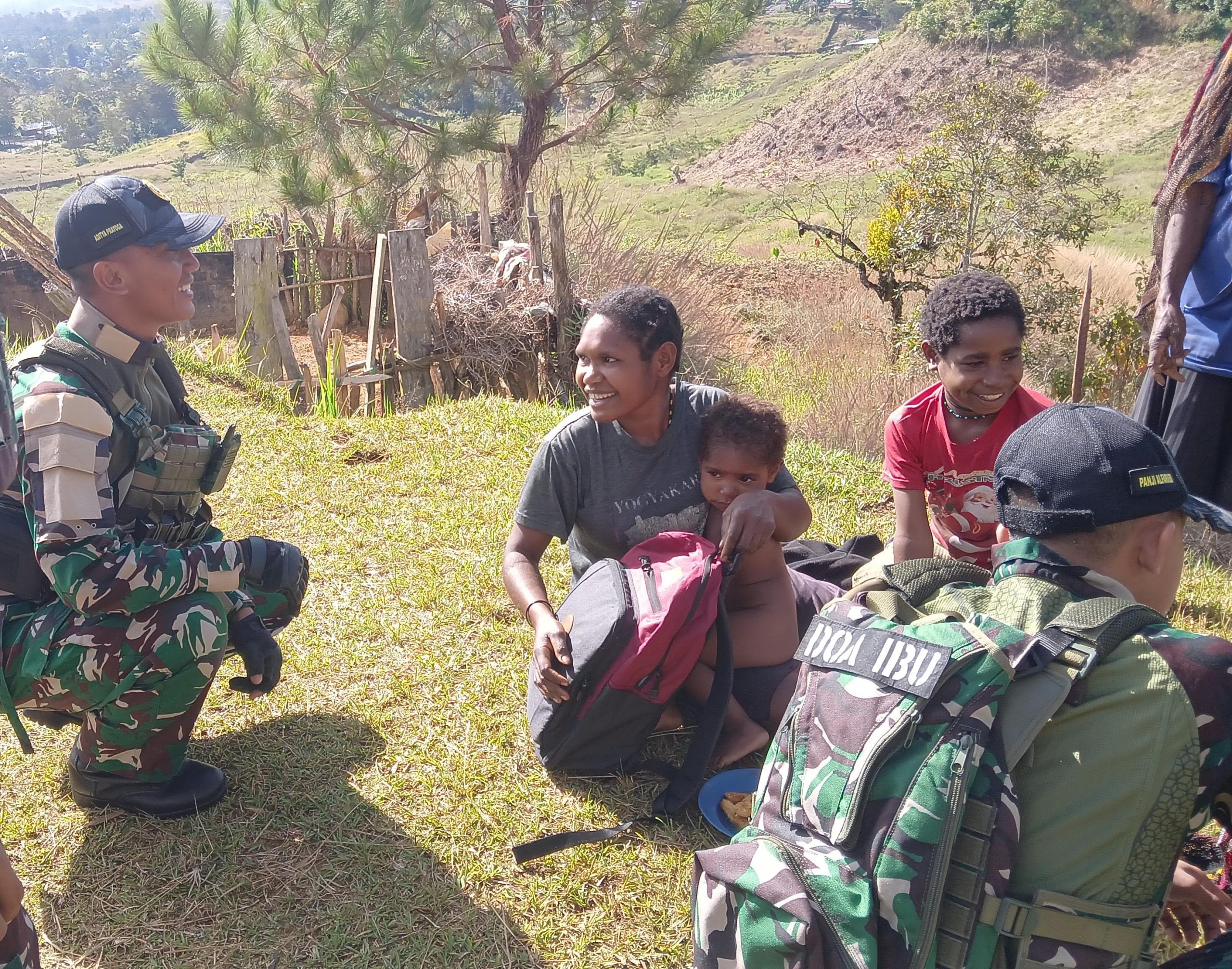 Selain melaksanakan komunikasi Sosial personil Pos Napua juga memberikan bantuan berupa sembako dan alat tulis kepada warga yang membutuhkan yang sekiranya dapat membantu mereka.
