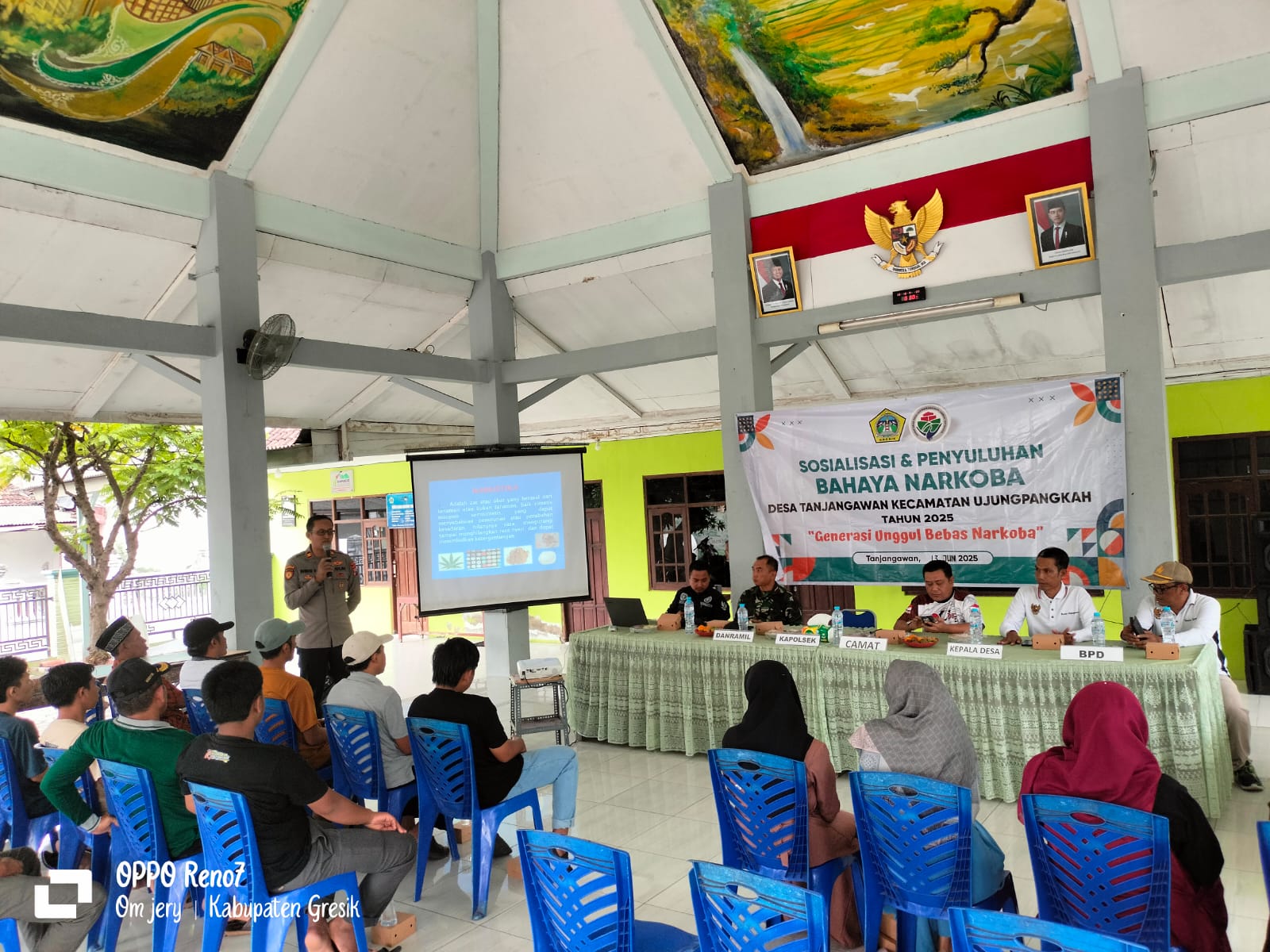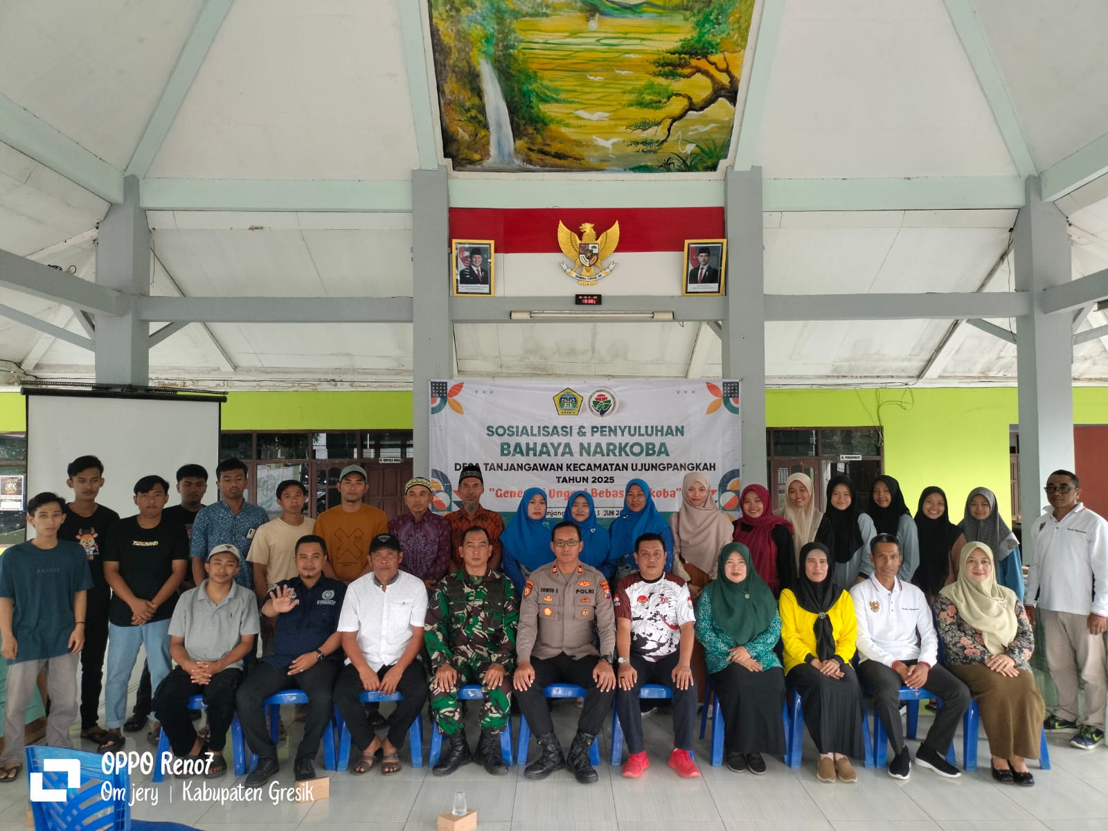Dalam sambutannya, Camat Ujungpangkah, Bapak Shofwan Hadi, S.Ag, menyampaikan pentingnya sinergi semua pihak dalam memerangi peredaran narkoba