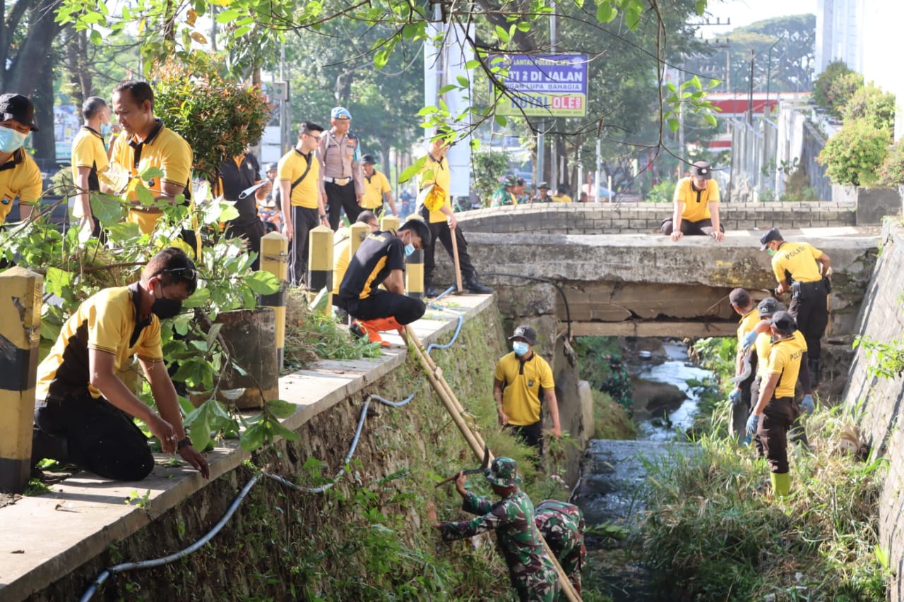 Kapolres Batu AKBP Andi Yudha Pranata menyampaikan kegiatan ini tidak hanya bertujuan menjaga kebersihan lingkungan, tetapi juga sebagai upaya pencegahan dini terhadap potensi bencana banjir yang kerap mengancam saat musim hujan tiba.