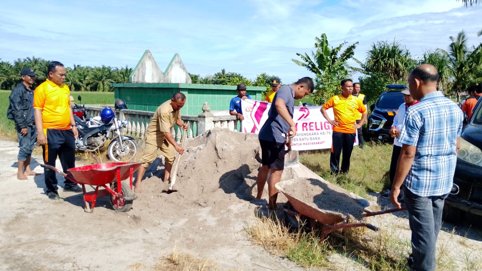 Selain membersihkan makam, Polsek Indrapura juga melakukan penimbunan jalan akses menuju makam untuk mempermudah akses bagi para peziarah.