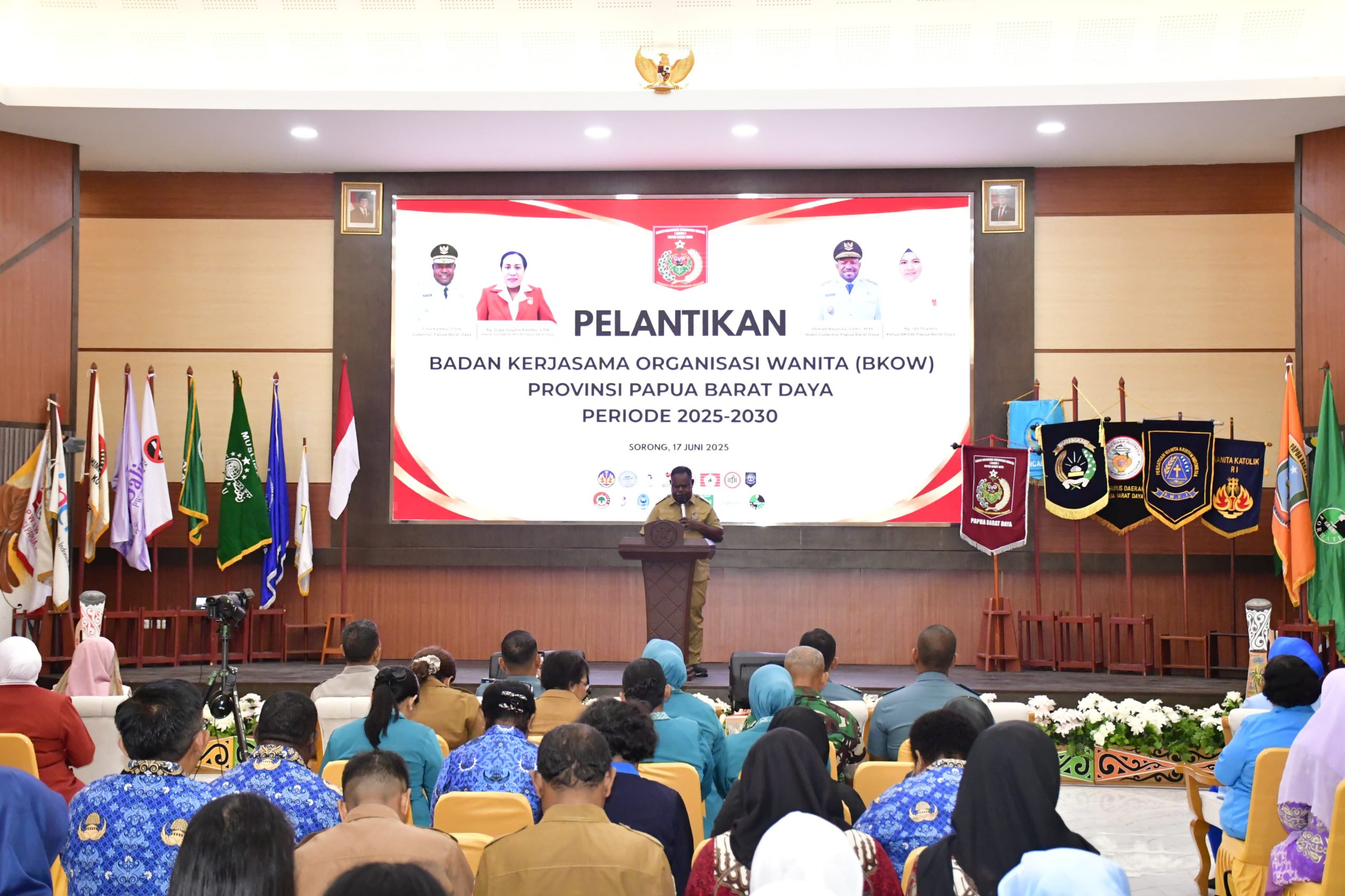 Kegiatan ini turut dihadiri oleh Gubernur Papua Barat Daya Elisa Kambu, S.Sos., didampingi Ketua TP-PKK Papua Barat Daya Ny. Orpa Suzana Kambu selaku Dewan Penasehat BKOW beserta Wakil Gubernur Papua Barat Daya Ahmad Nausrau, S.Pd.I., beserta Ny. Ida Priyanti selaku Ketua BKOW Papua Barat Daya.