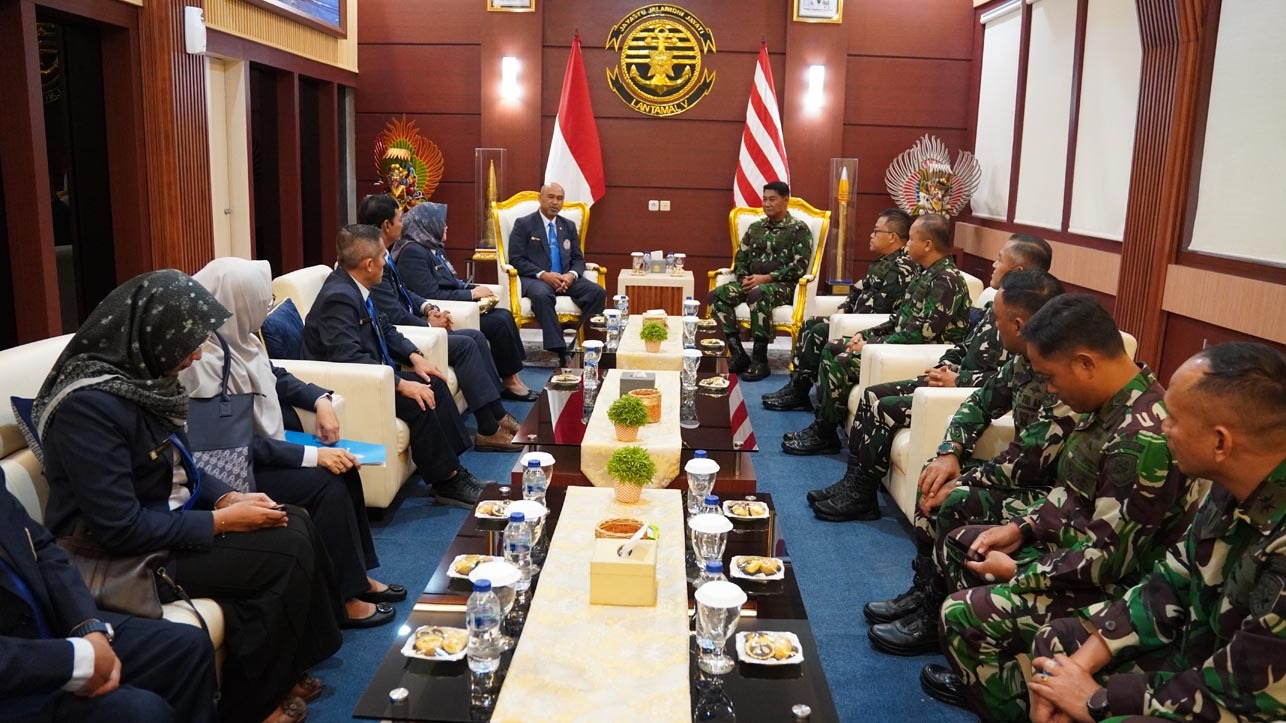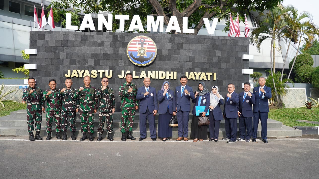 Kunjungan tersebut disambut langsung oleh Komandan Lantamal V, Laksamana Pertama TNI Dr. Arya Delano, S.E., M.Pd., M.Han., di ruang kerjanya, dan dihadiri oleh jajaran pejabat utama Lantamal V. Pertemuan berlangsung dalam suasana hangat dan penuh semangat kolaboratif, dengan membahas berbagai peluang kerja sama strategis di bidang pendidikan, pelatihan, penelitian, dan pengabdian kepada masyarakat.