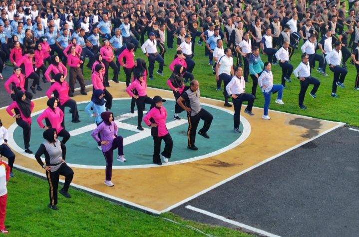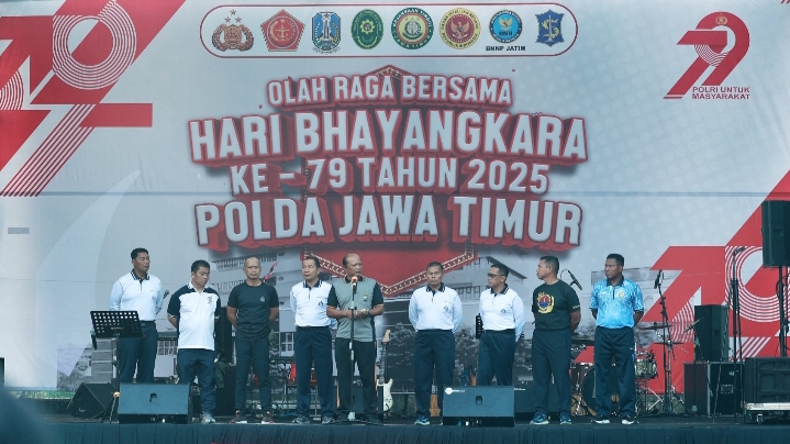 Kapolda Jatim Irjen Pol Drs. Nanang Avianto, M.Si menyampaikan kegiatan olahraga bersama dalam rangka menyambut Hari Bhayangkara ke – 79 merupakan momentum yang sangat baik.