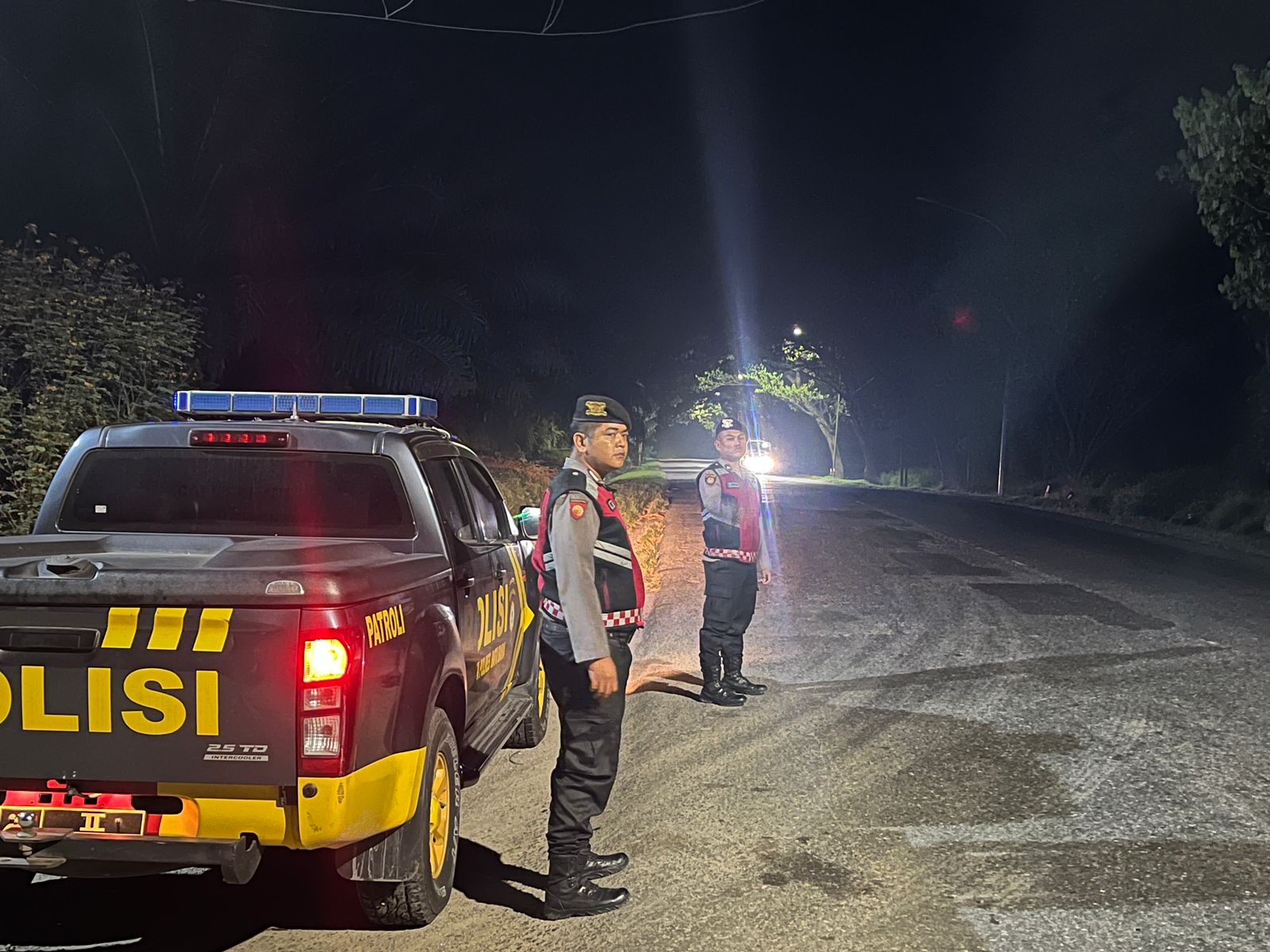 Patroli menggunakan satu unit mobil R-4 Sat Samapta Isuzu D-Max dan difokuskan di Simpang PT Socfin Indonesia Tanah Gambus.