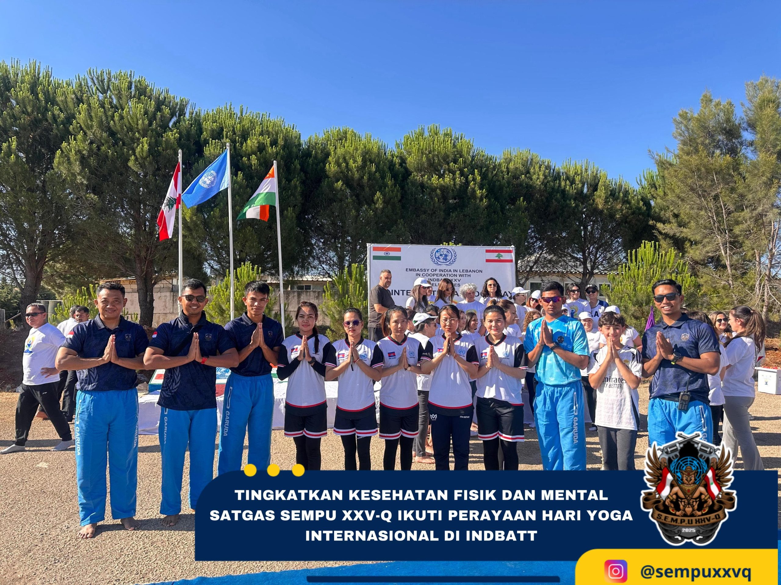 Blat, Lebanon Selatan,Komposisinews.com – rabu (25/6/25) –Tepat di UNP 4-2, Markas Batalyon India, Satgas SEMPU XXV-Q ikuti perayaan Hari Yoga Internasional yang rutin dilaksanakan setiap tahunnya oleh Kontingen India terkhusus di wilayah Sektor Timur. Kegiatan ini dihadiri oleh seluruh Kontingen dari Sektor Timur.