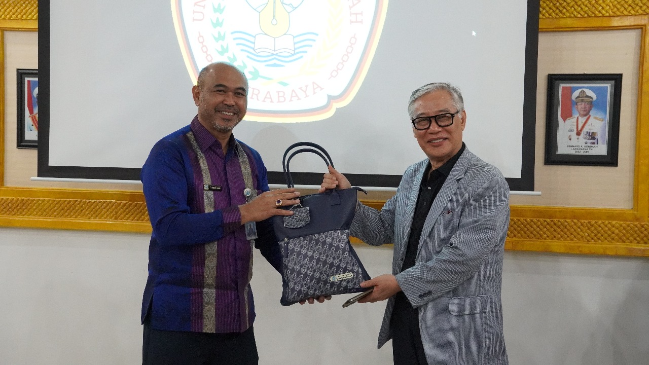 Rektor UHT, Laksamana Muda (Purn) Dr. Ir. Avando Bastari, M.Phil., M.Tr.Opsla., IPM., ASEAN Eng., menerima langsung rombongan tamu, didampingi oleh jajaran pimpinan universitas Wakil Rektor I Dr. Widyastuti, drg., Sp.Perio., Wakil Rektor II Laksda (Purn) Dr. Iwan Isnurwanto, S.H., M.A.P., M.Tr.(Han), Wakil Rektor III Laksma (Purn) Dr. Toto Dwijaya Saputra, S.T., M.Si(Han)., M.Tr.Opsla., Kepala Kerja Sama & Urusan Internasional, Dewi Casmiwati, S.IP, M.Si., Ph.D. Turut hadir pula perwakilan dari Fakultas Kedokteran Gigi Universitas Hang Tuah.