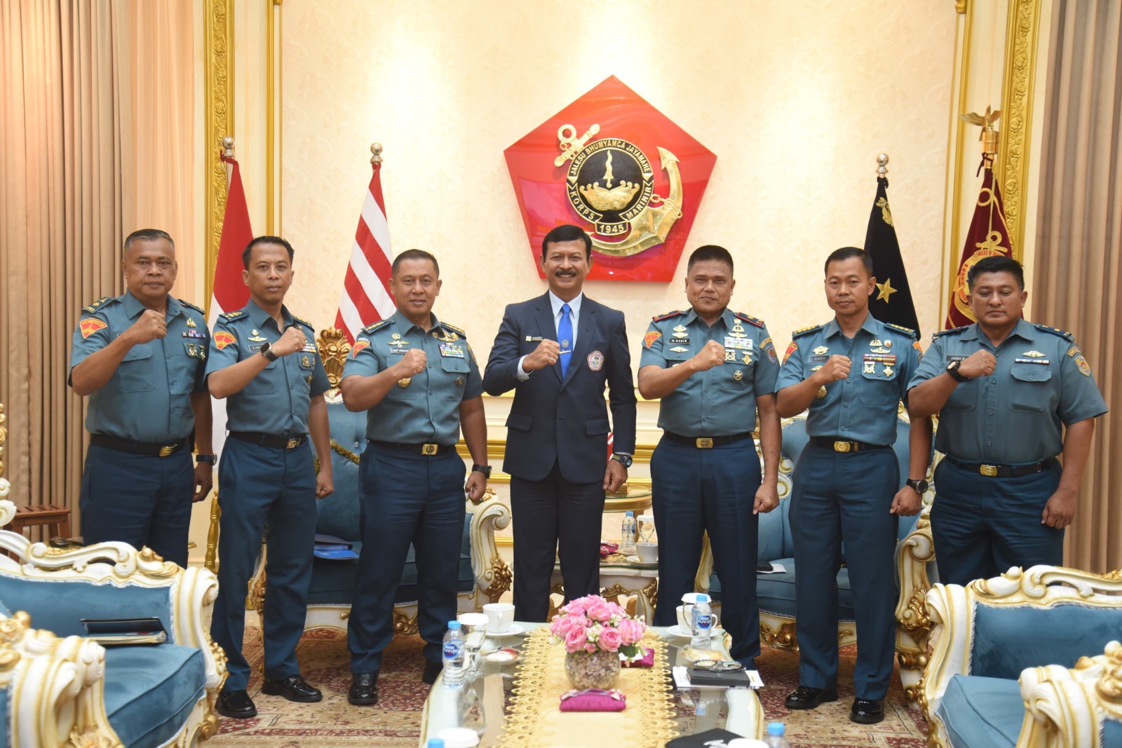 Surabaya,Komposisinews.com – Wakil Komandan Korps Marinir (Wadan Kormar) TNI AL, Brigjen TNI (Mar) Muhammad Nadir, M.Tr.Opsla., mewakili Komandan Korps Marinir TNI AL, Mayor Jenderal TNI (Mar) Dr. Endi Supardi, S.E., M.M., M.Tr.Opsla., CHRMP., CRMP., menerima kunjungan kehormatan (courtesy call) dari Wakil Rektor II Universitas Hang Tuah (UHT), Laksamana Muda (Purn) Dr. Iwan Isnurwanto, S.H., M.A.P., M.Tr.(Han.), di Admiral Room, Gedung Utama Markas Komando Korps Marinir, Jl. Raya Usman dan Harun No. 40, Kwitang, Jakarta Pusat.