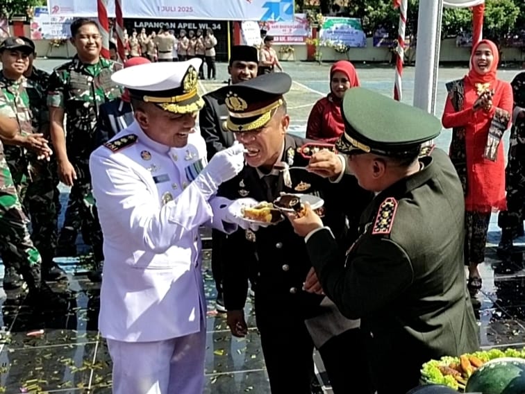 Momen kebersamaan semakin terasa saat Dandim dan Kapolres saling menyuapi potongan kue dan tumpeng, disaksikan langsung oleh jajaran TNI-Polri, forkopimda, dan para undangan yang turut hadir. Suasana hangat dan penuh canda tawa pun menjadi warna tersendiri dalam peringatan Hari Bhayangkara tahun ini.