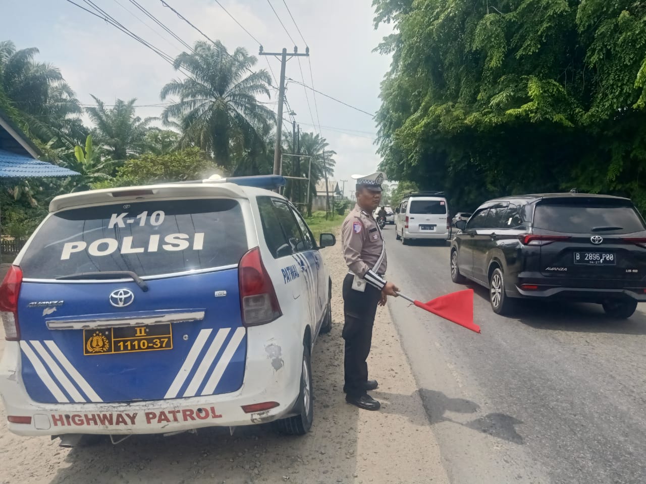 Dengan mengibarkan bendera dan merekam video situasi, tim patroli memberikan imbauan langsung kepada pengguna jalan dan sekaligus mendokumentasikan kondisi lalu lintas secara real-time.