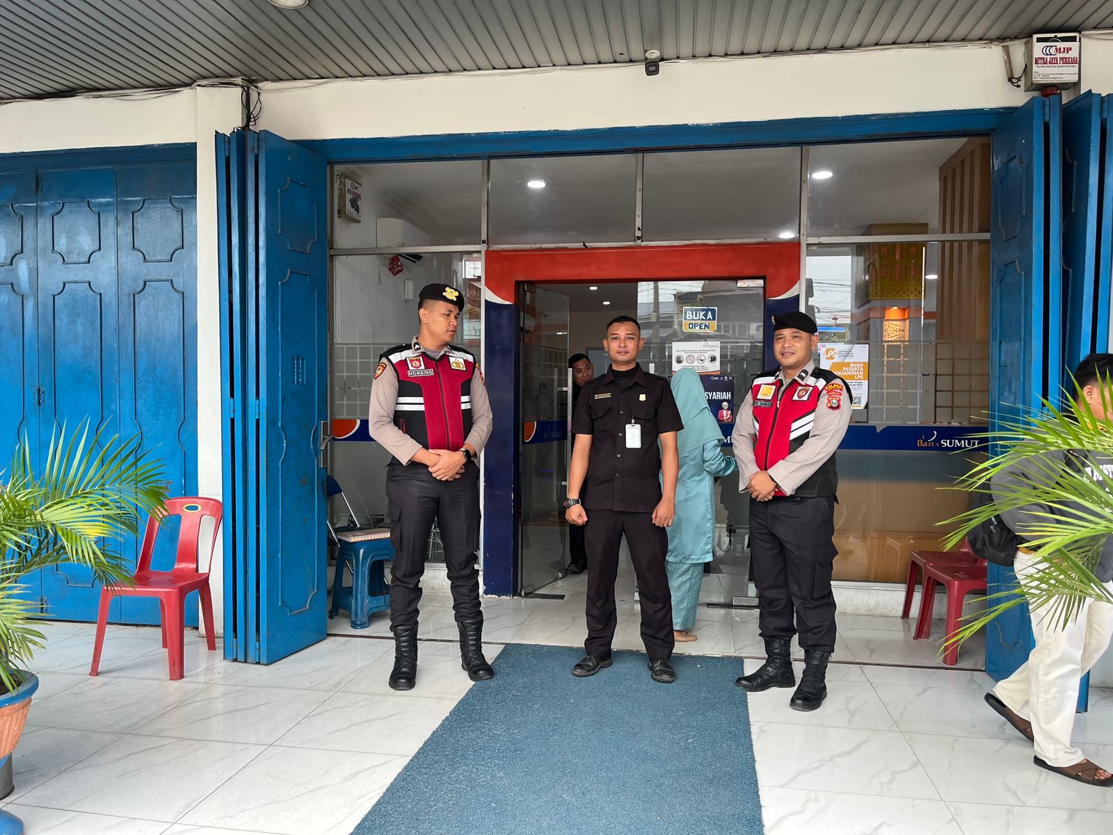 Tim patroli yang terdiri dari AIPDA Dedi Iskandar, Bripda Adi Sihombing, dan Bripda Rian Sipayung, melakukan patroli di sekitar sejumlah lembaga keuangan, termasuk Bank Sumut Limapuluh, Bank BRI Limapuluh, dan Pegadaian Limapuluh.