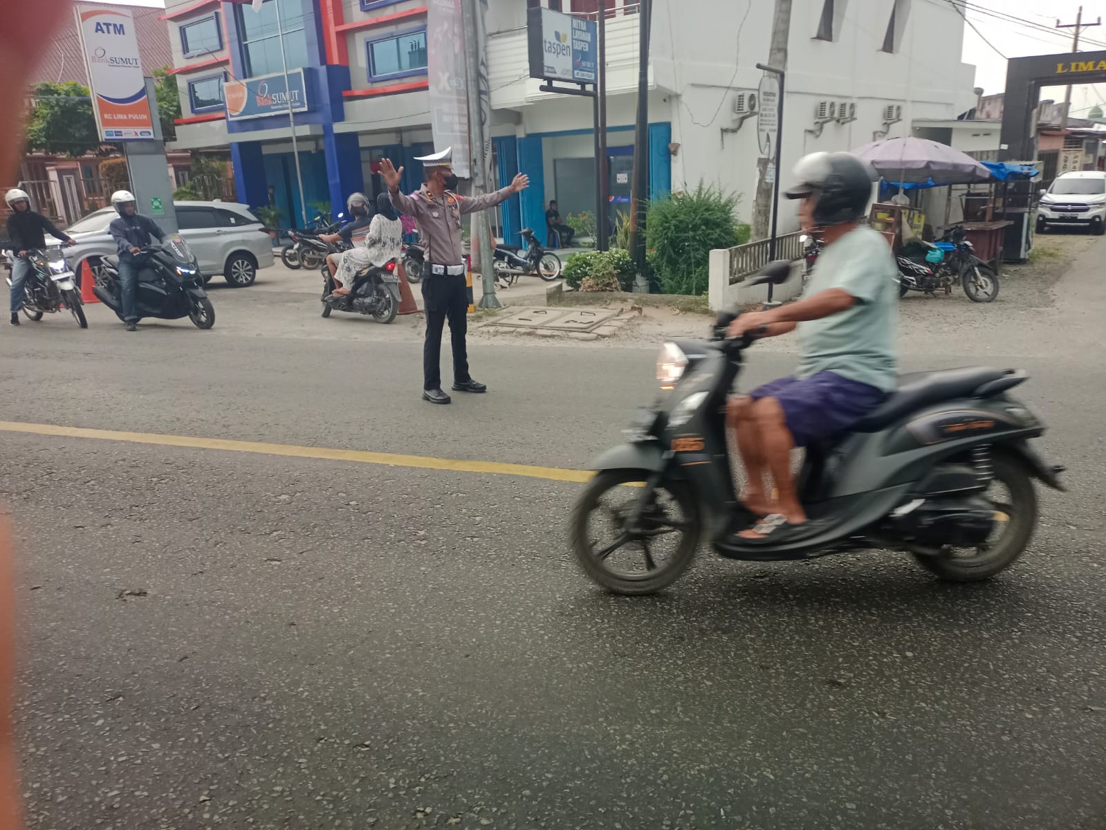 Kegiatan pengaturan lalu lintas yang dimulai pukul 07.00 WIB hingga selesai ini berlangsung lancar di bawah cuaca cerah.
