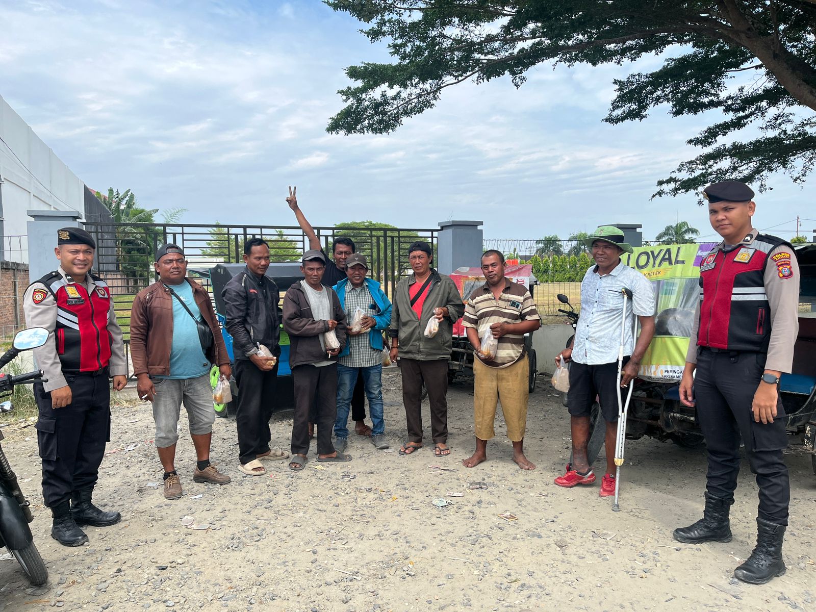 AIPDA Dedi Iskandar, Bripda Adi Sihombing, dan Bripda Rian Sipayung turut serta membagikan makanan kepada masyarakat kurang mampu di wilayah hukum Polres Batu Bara, khususnya di sekitar Simpang Tol Indrapura.