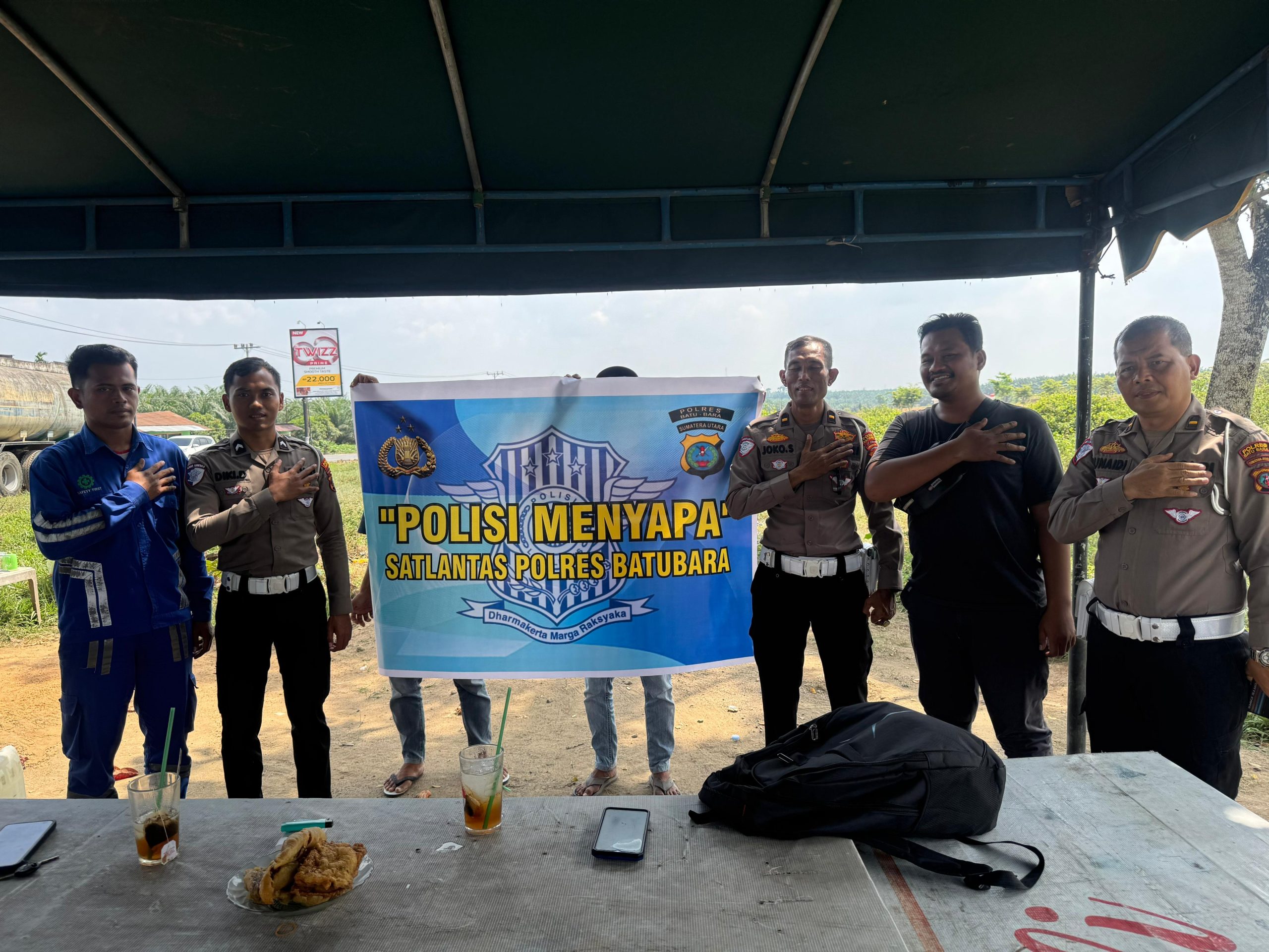 Kehadiran Kasatlantas Polres Batu Bara, AKP Agnis Juwita, S.I.K., yang diwakili Kanitkamsel Ipda Joko Susilo, menambah semarak suasana. Mereka memimpin kegiatan Dikmas Lantas yang unik dan efektif: “Lalu Lintas Menyapa – Ngopi Bareng”.