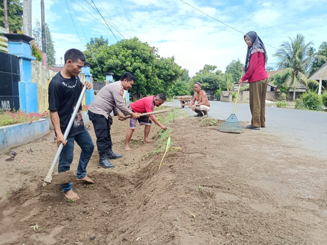 Kegiatan gotong royong berjalan aman dan lancar, menunjukkan sinergi yang baik antara aparat keamanan, pemerintah desa, dan masyarakat.