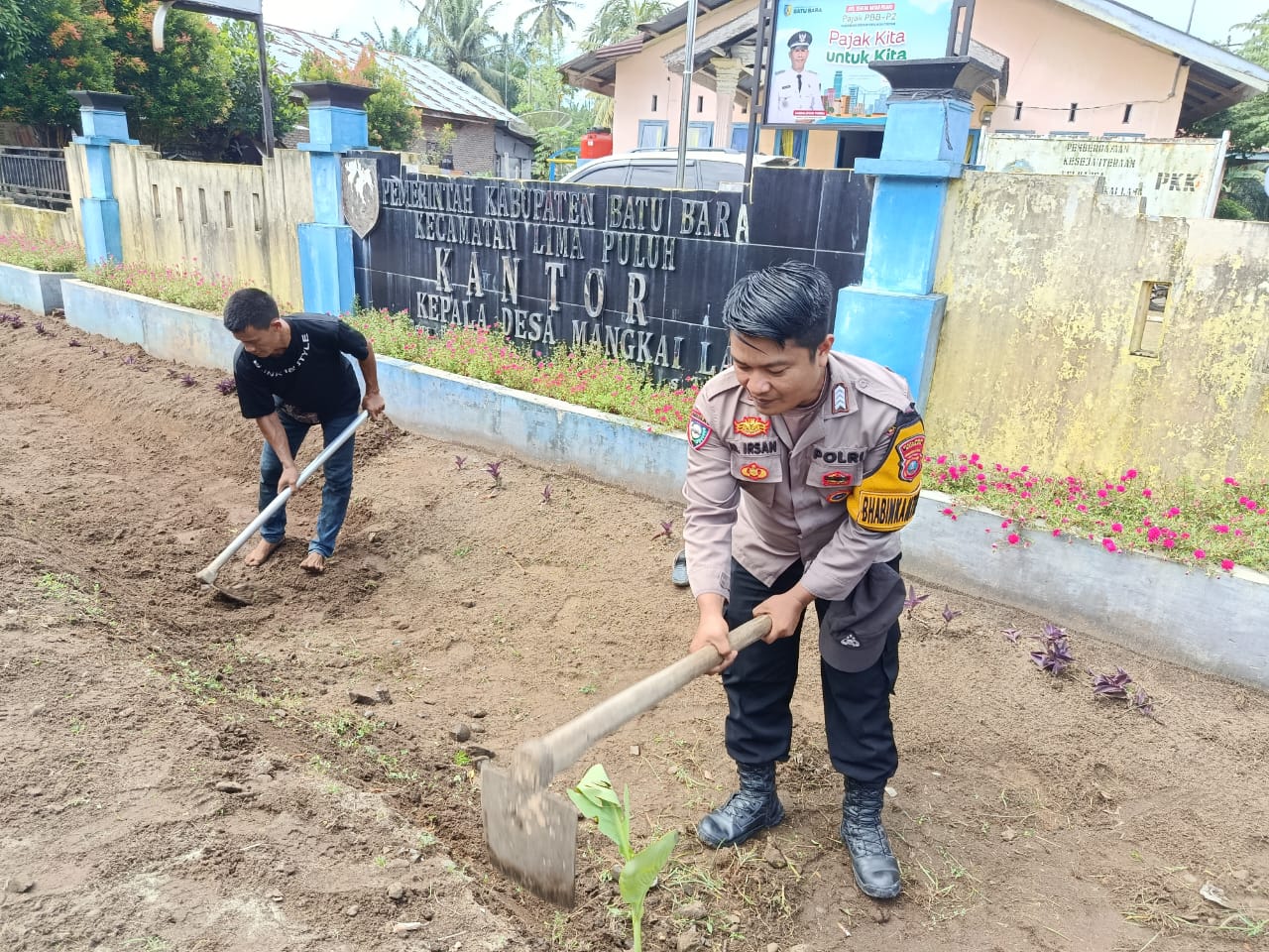 Batu Bara,Komposisinews.com – 9 Juli 2025, pukul 11.10 WIB, Bhabinkamtibmas Bripka M. Irsan Lubis bersama Kepala Desa Mangkai Lama (Sardalisyah Purba), seluruh Kepala Dusun, dan masyarakat Desa Mangkai Lama, Kecamatan Lima Puluh, Kabupaten Batu Bara, bergotong royong membersihkan lingkungan.