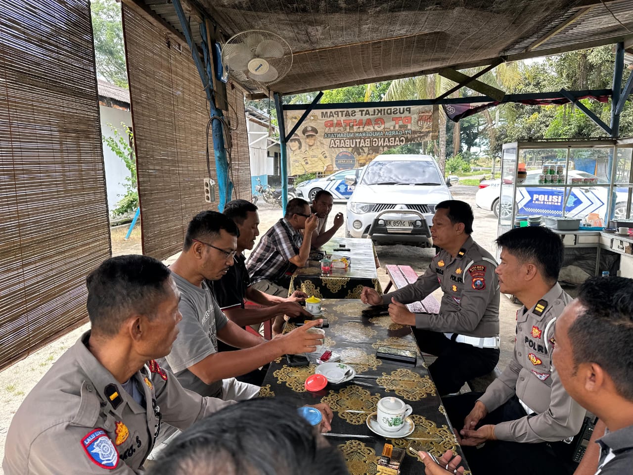 Batu Bara,Komposisinews.com – 9 Juli 2025, Kanit Kamsel Satlantas Polres Batu Bara, IPDA Joko Susilo, mewakili Kasatlantas AKP Agnis Juwita, S.I.K., melaksanakan kegiatan Dikmas Lantas “Lalu Lintas Menyapa – Ngopi Bareng” di Warung Kopi Timbangan, Kecamatan Lima Puluh, Kabupaten Batu Bara.