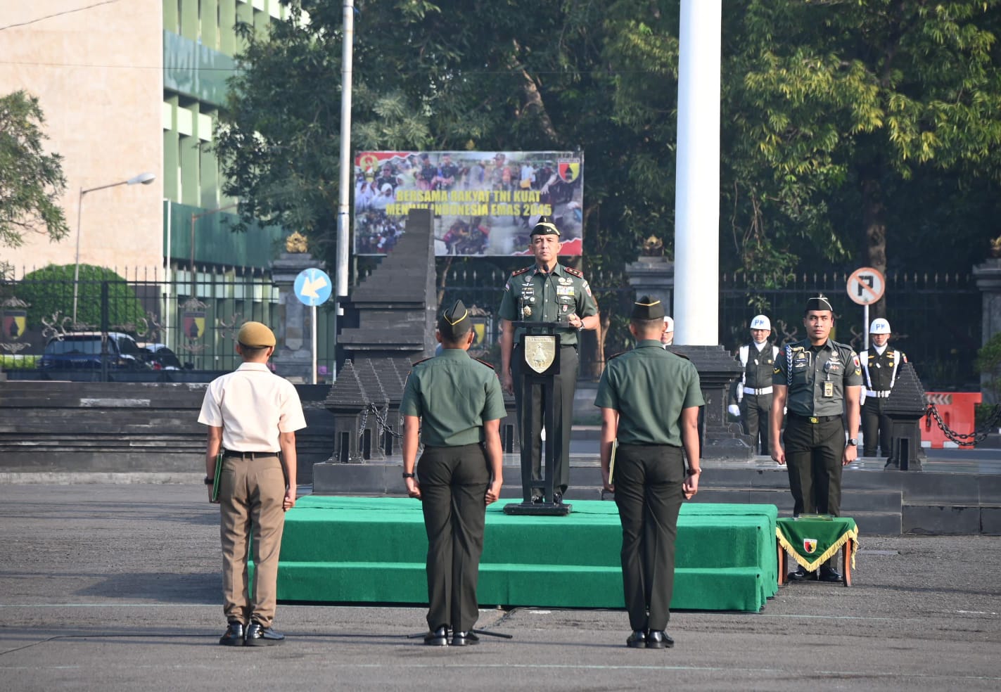 Pangdam V/Brawijaya menyampaikan pesan Panglima TNI yang menyoroti kompleksitas situasi keamanan regional dan global. juga mengingatkan kepada seluruh peserta upacara untuk senantiasa waspada dan siap siaga. Profesionalisme, disiplin, dan integritas ditegaskan sebagai fondasi dalam menjalankan tugas.