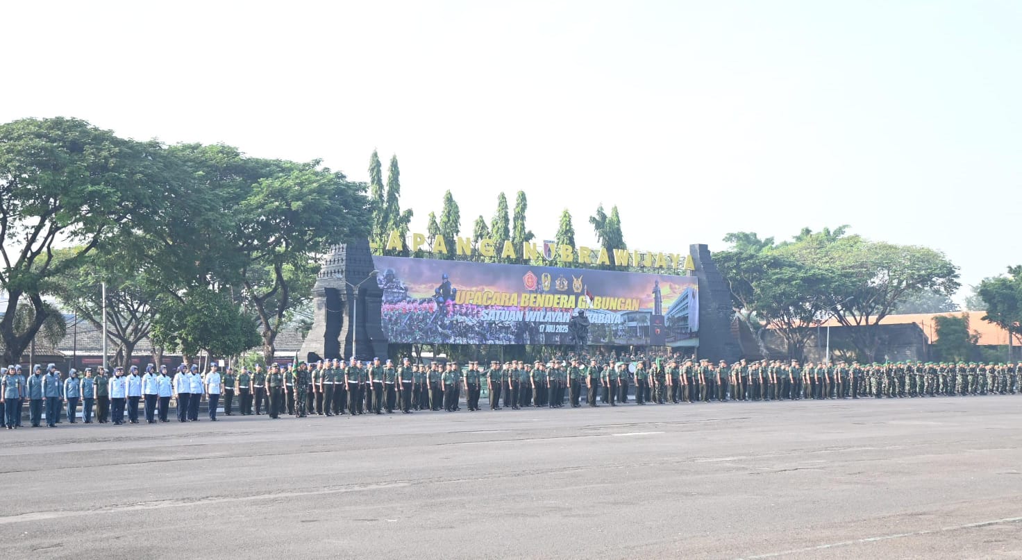 Surabaya,Komposisinews.com – Pangdam V/Brawijaya, Mayjen TNI Rudy Saladin, M.A., memimpin sekaligus menjadi Irup dalam upacara bendera 17an di Lapangan Brawijaya, Surabaya, dan membacakan amanat Panglima TNI. Upacara tersebut dihadiri oleh para Pejabat Utama (PJU) Matra Darat, Laut maupun Udara. Prajurit TNI perwakilan dari masing-masing Matra dan PNS tiga Matra jajaran Gartap III/Surabaya. Kamis (17/07/2025) Dalam amanat yang dibacakan, Panglima TNI menekankan pentingnya kewaspadaan dan kesiapsiagaan prajurit serta PNS TNI dalam menghadapi dinamika keamanan terkini.