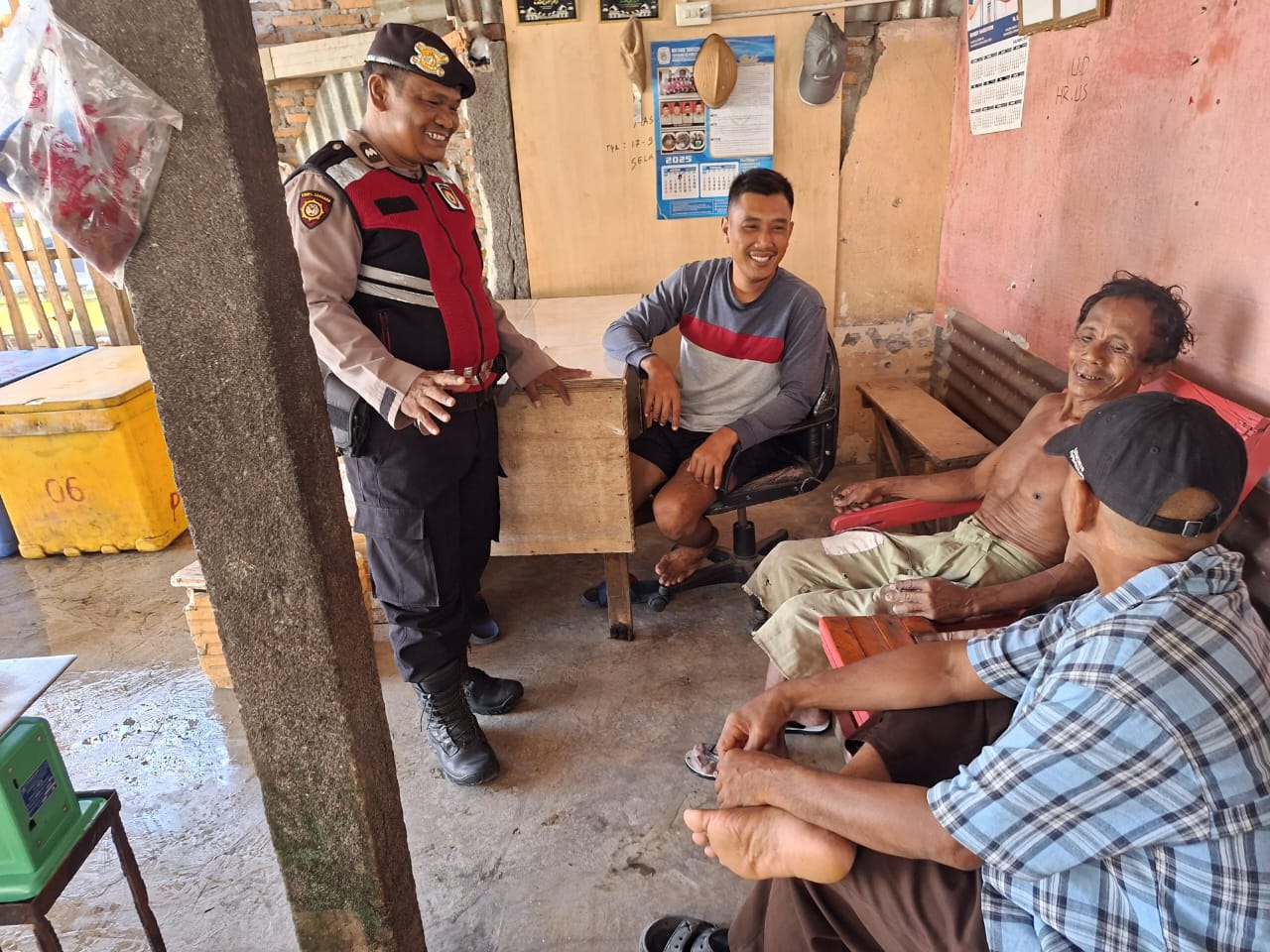 Aipda Tr. Situmorang secara langsung berinteraksi dengan warga, menyampaikan himbauan Kamtibmas yang menekankan pentingnya peran serta masyarakat dalam menjaga keamanan lingkungan.