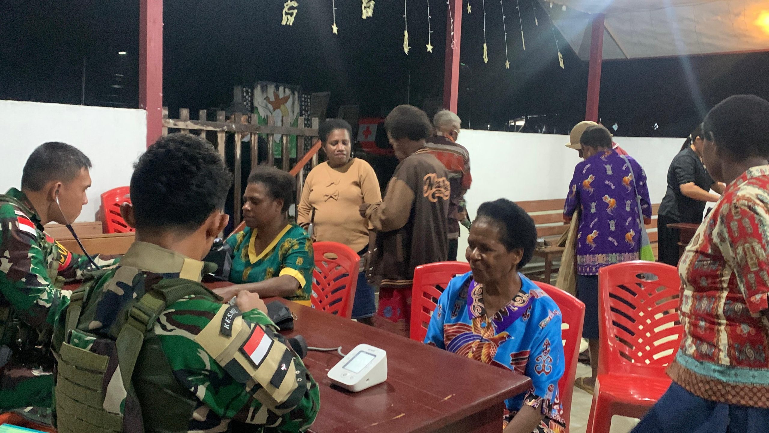 Kegiatan ini dipimpin langsung oleh dokter Satgas Yonif 763/SBA yang memberikan edukasi tentang pentingnya pola hidup sehat, perawatan diri bagi lansia, serta deteksi dini terhadap penyakit degeneratif seperti hipertensi, diabetes, dan gangguan jantung.