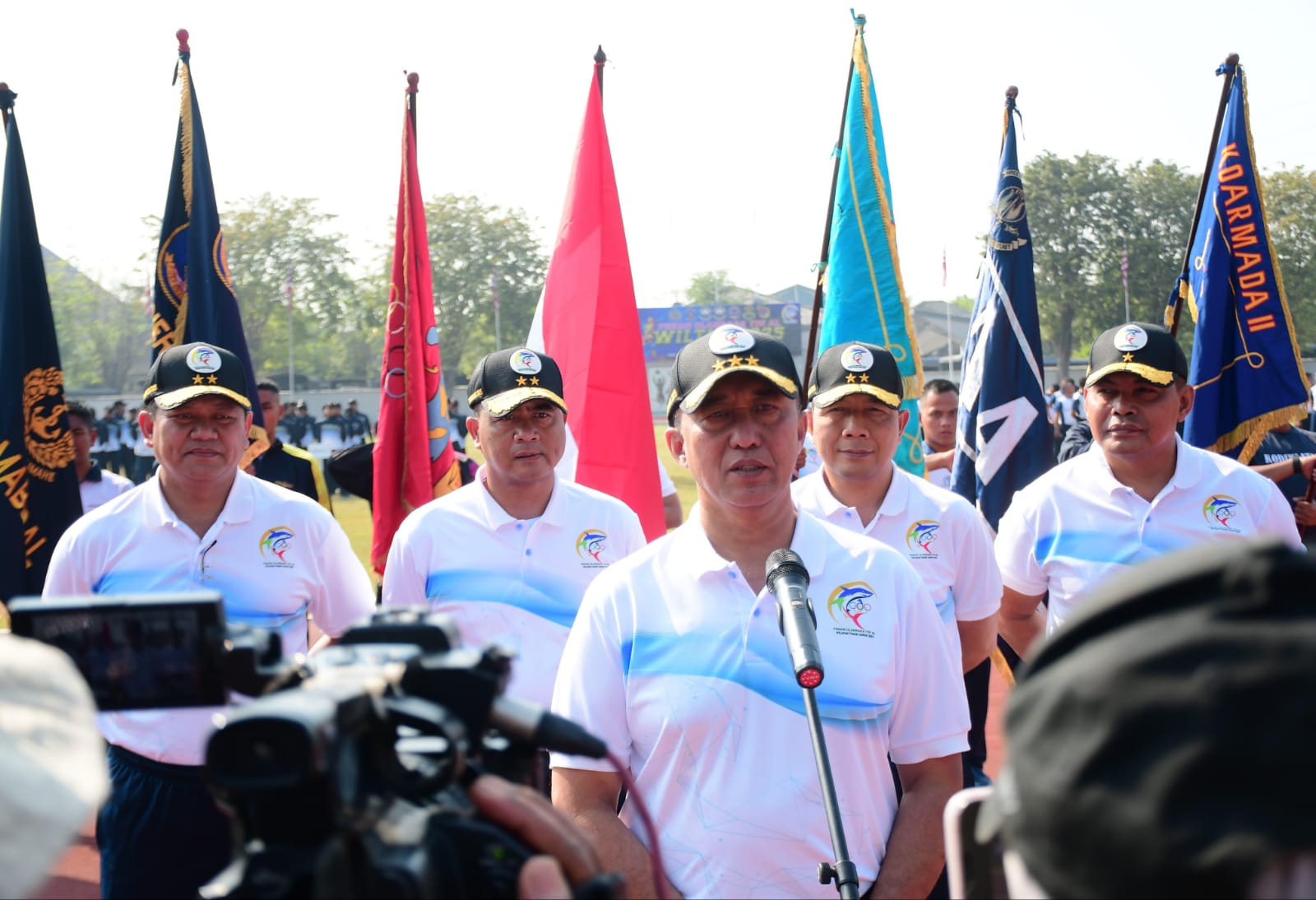 Hadir dalam kegiatan tersebut, Komandan Puspenerbal, Laksda TNI Bayu Alisyahbana, Wadan beserta para PJU dan Kasatker Puspenerbal, Pangkoarmada II, Gubernur AAL, Pangkoarmada III beserta pejabat undangan serta perwakilan personel dari berbagai Satuan Wilayah Surabaya yang memenuhi stadion.(Arifin)