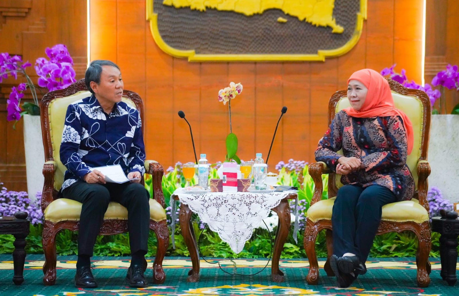 “Suatu kehormatan dan kebahagiaan bagi kami untuk menyambut kehadiran Bapak Konjen beserta seluruh delegasi,” ujar Gubernur Khofifah.