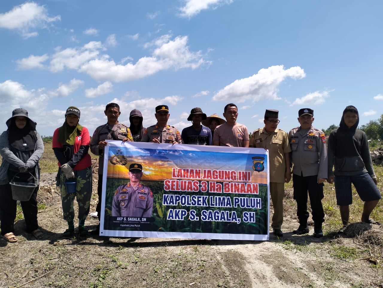 Dalam kegiatan tersebut, Kapolsek Lima Puluh menggerakkan warga untuk meningkatkan ketahanan pangan dengan mengolah dan menanam jagung di lahan seluas 3 hektar. Panen jagung diperkirakan akan dilaksanakan pada bulan November 2025.
