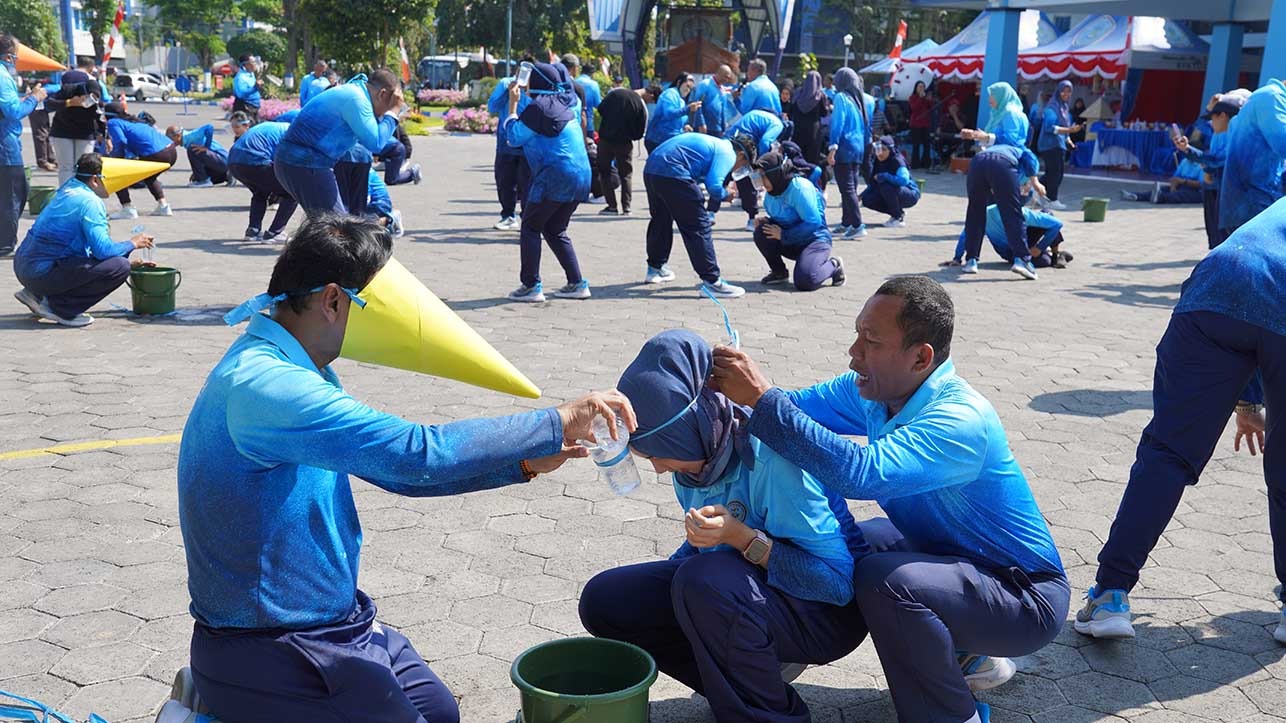 Setelah sesi sambutan, peserta mengikuti pemeriksaan kesehatan gratis, diikuti lomba-lomba seru seperti pindah bola menggunakan tali dan estafet air dengan gelas plastik. Tawa, sorak, dan semangat sportifitas mewarnai jalannya lomba.