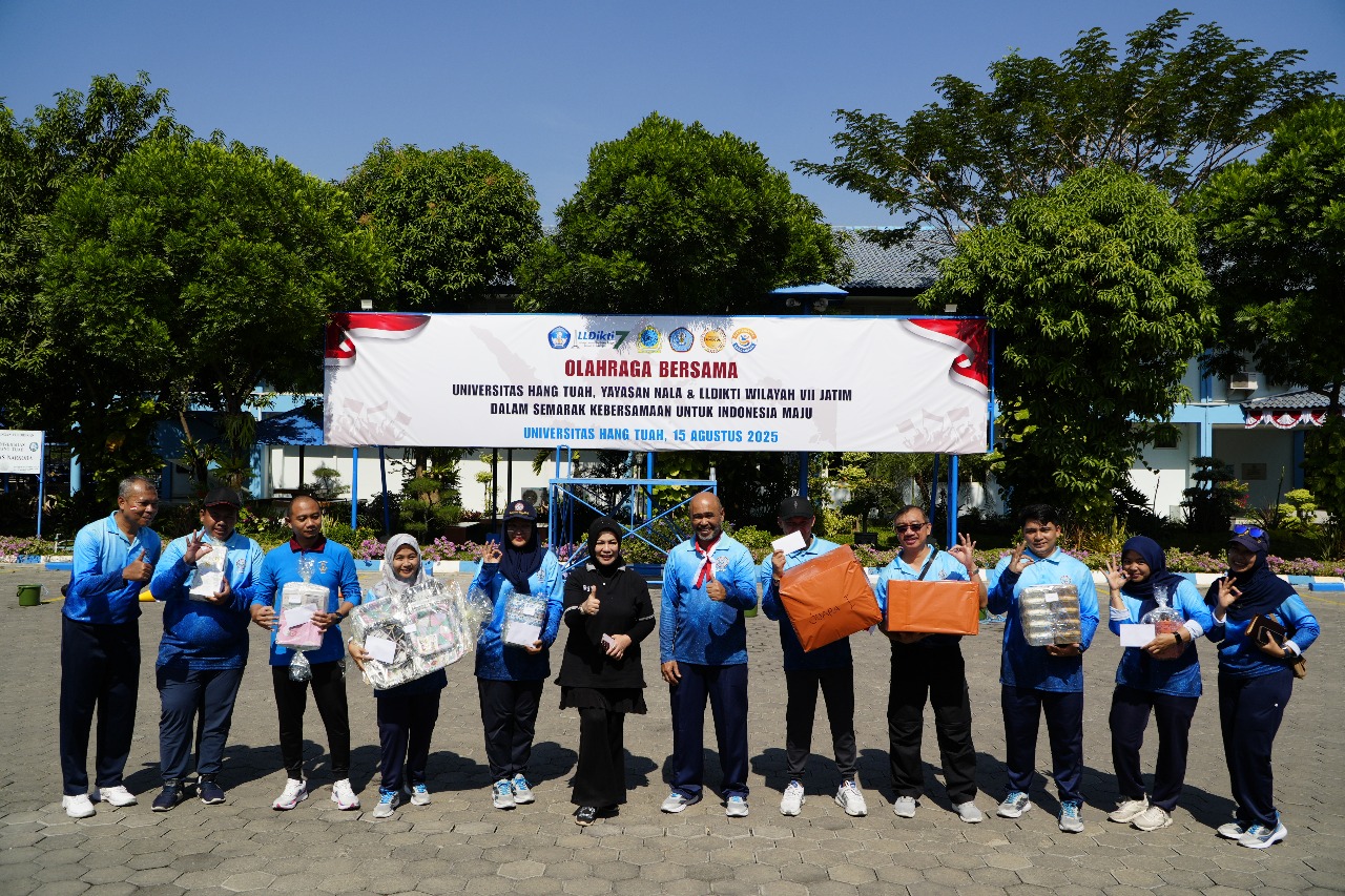 Surabaya,Komposisinews.com – 15 Agustus 2025 – Dalam rangka memperingati Hari Ulang Tahun Republik Indonesia, Universitas Hang Tuah menggelar rangkaian kegiatan meriah bersama LLDIKTI Wilayah 7 dan Yayasan Nala. Acara ini berlangsung di kampus Universitas Hang Tuah dengan penuh antusiasme dari seluruh sivitas akademika dan tamu undangan.